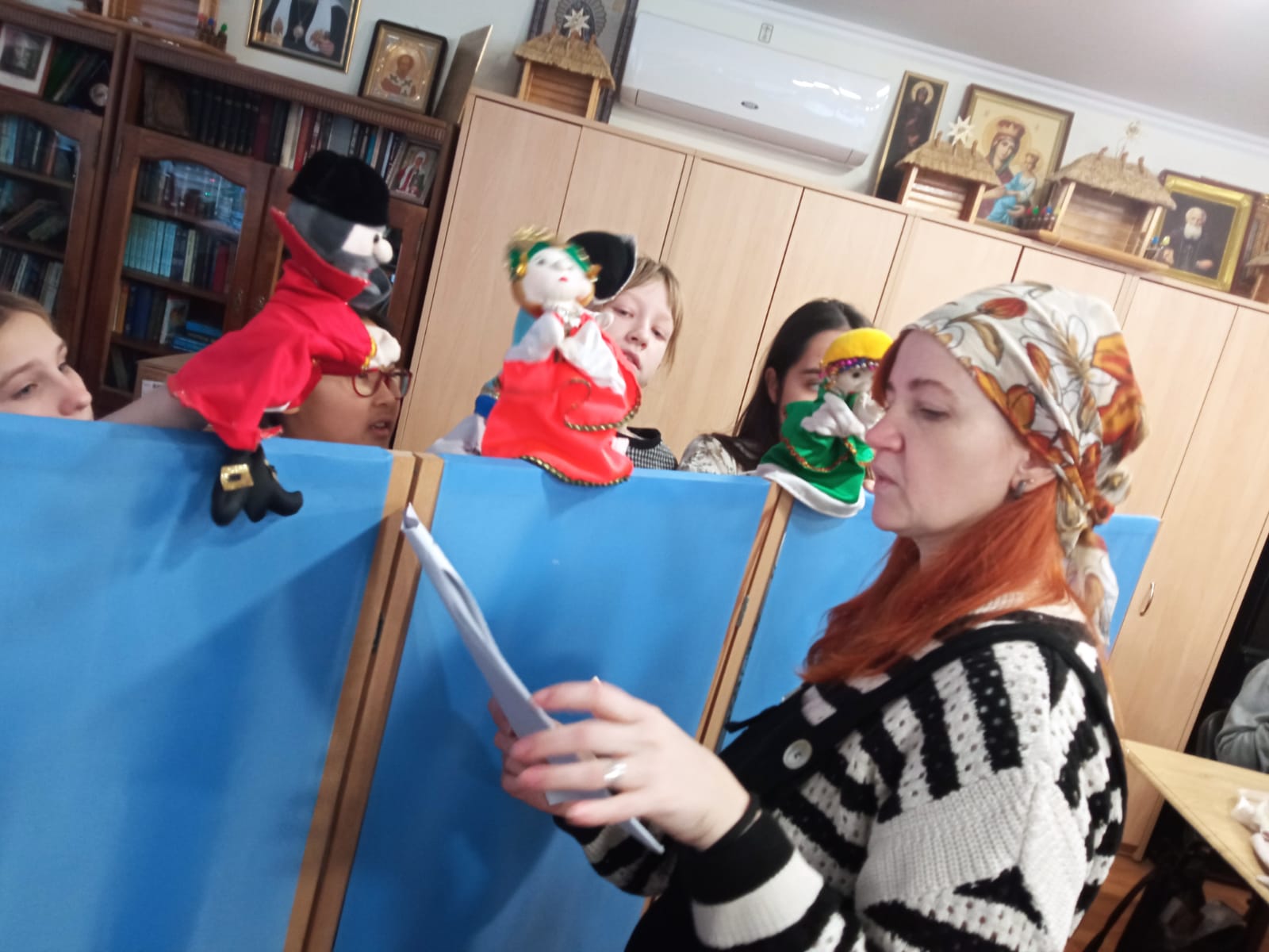 Театральная студия продолжила репетиции кукольного спектакля «Аленький цветочек» и разучивание праздничных песен.