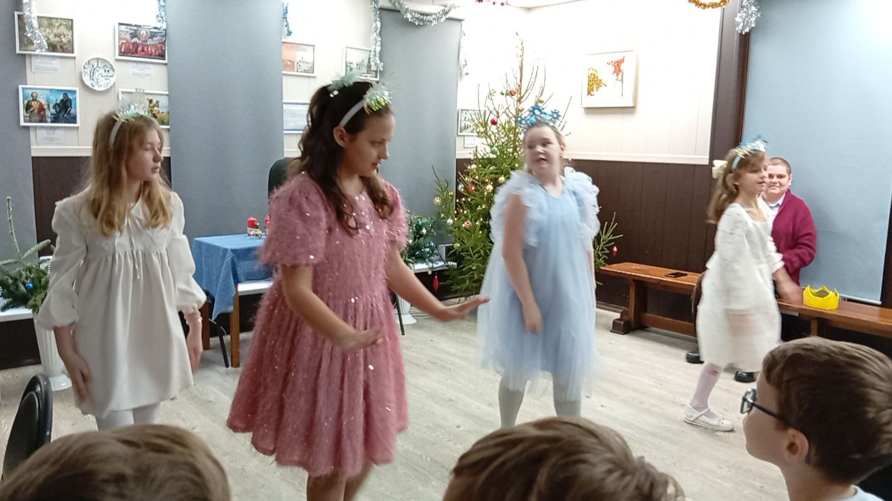 Воспитанники воскресной школы устроили праздничный концерт. Дети показали гостям спектакль «День рождения Царя», пели колядки, а также сценку на тему Рождества Христова.