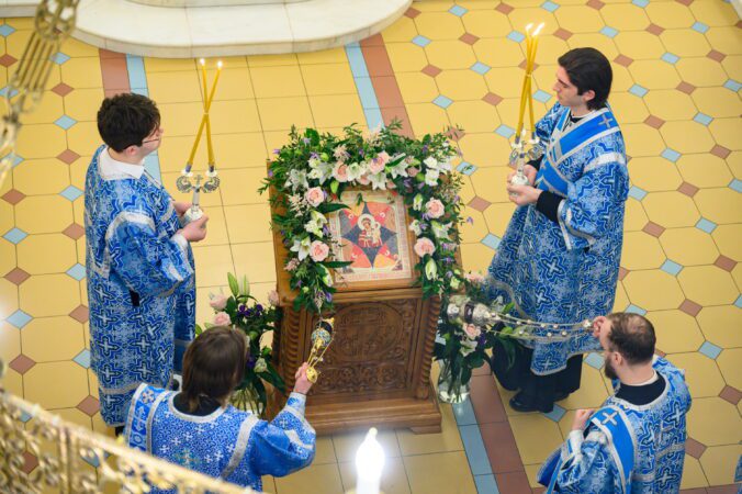 Чтение акафиста сопровождалось пением правого хора храма под управлением Михаила Бурмистрова.