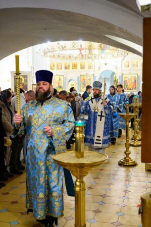 В канун Субботы Акафиста митрополит Арсений совершил утреню с чтением акафиста в храме Иконы Божией Матери «Неопалима Купина» в Отрадном