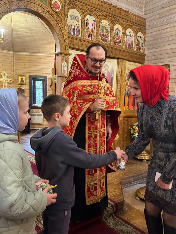 Также детки из воскресной школы вручили всем присутствующим подарки, сделанные своими руками с любовью.