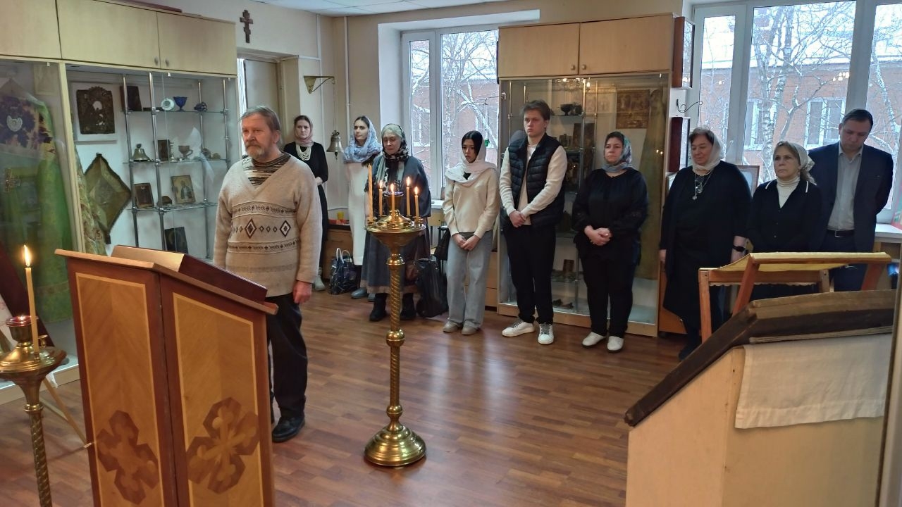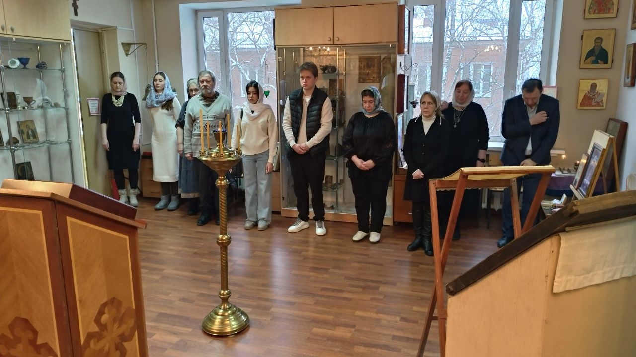 За Литургией молились директор вуза М. В. Юдин, зам. директора по воспитательной работе О. В. Савкина, доцент кафедры Общего и славянского искусствознания А. К. Конёнкова — внучка выдающегося скульптора, преподаватели, студенты и сотрудники вуза, пятеро из них причастились Святых Христовых Таин. Пел хор из храма святых мучеников Адриана и Наталии в Бабушкине.