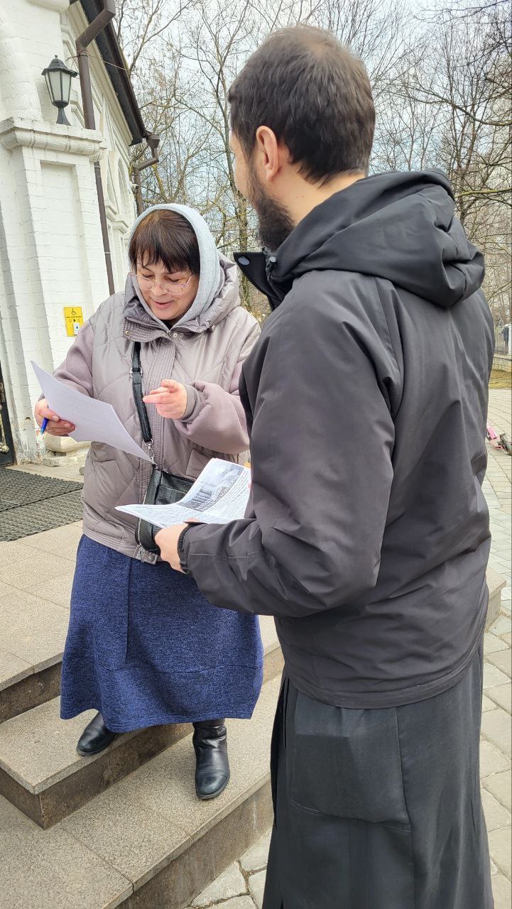 Преподаватель просветительских курсов храма чтец Сергей Беховский, вместе с двумя учащимися, на выходе из храма поздравляли людей с воскресным днем и Великим постом. Рассказывали вопрошающим про глубинный смысл Таинства Соборования. Вместе с тем, многие люди интересовались, как подготовиться к другим священнодействиям: в частности, к Таинствам Исповеди и Евхаристии. В дополнение к этому, миссионеры предложили желающим пройти письменный тест с вариантами ответов на знание основ православной веры. После этого были подарены Евангелие и церковные брошюры.
