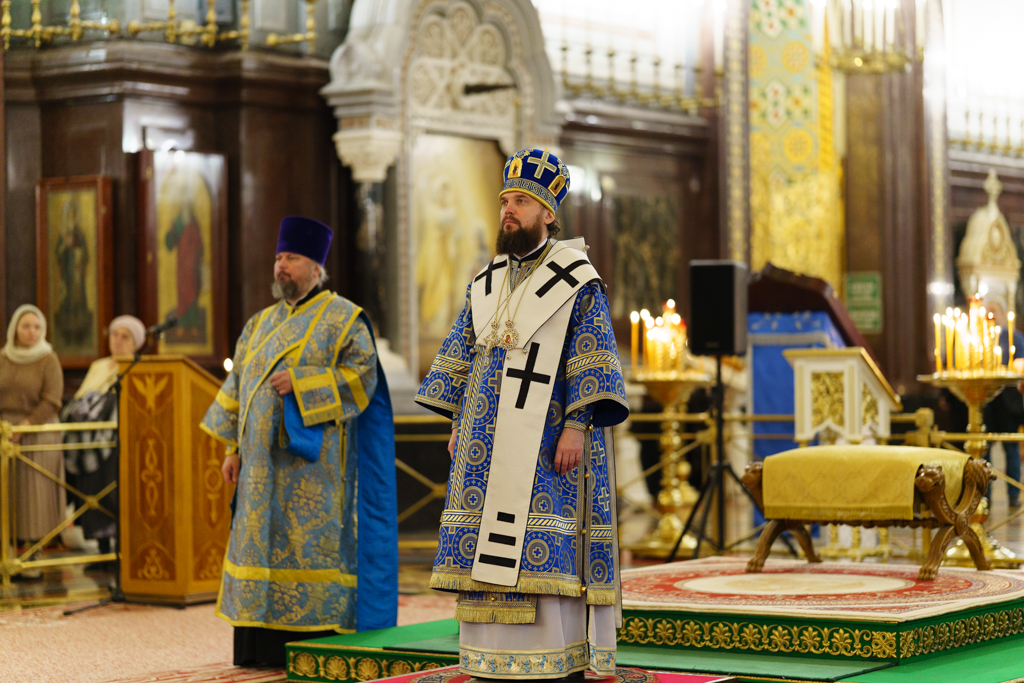 Его Высокопреосвященству сослужили: ключарь Храма Христа Спасителя протоиерей Михаил Рязанцев; клирики Храма Христа Спасителя — протоиерей Георгий Мартынов, иерей Михаил Нараевский и иерей Алексей Тимофеев, а также и.о. руководителя секретариата Северо-Восточного викариатства иерей Сергий Бычков.