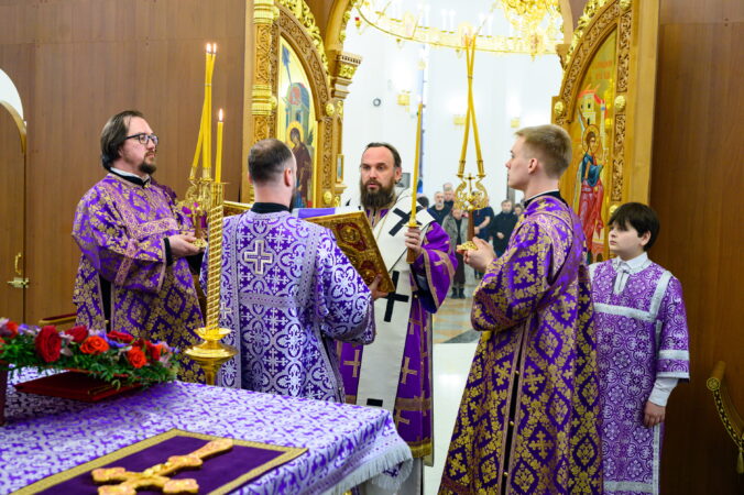 Вечером 14 марта 2026 года, накануне Недели 3-й Великого поста, Крестопоклонной, управляющий Северо-Восточным Московским викариатством митрополит Звенигородский Арсений возглавил всенощное бдение с чином выноса Честного и Животворящего Креста Господня в храме Успения Пресвятой Богородицы, Патриаршего подворья в Останкине города Москвы.
