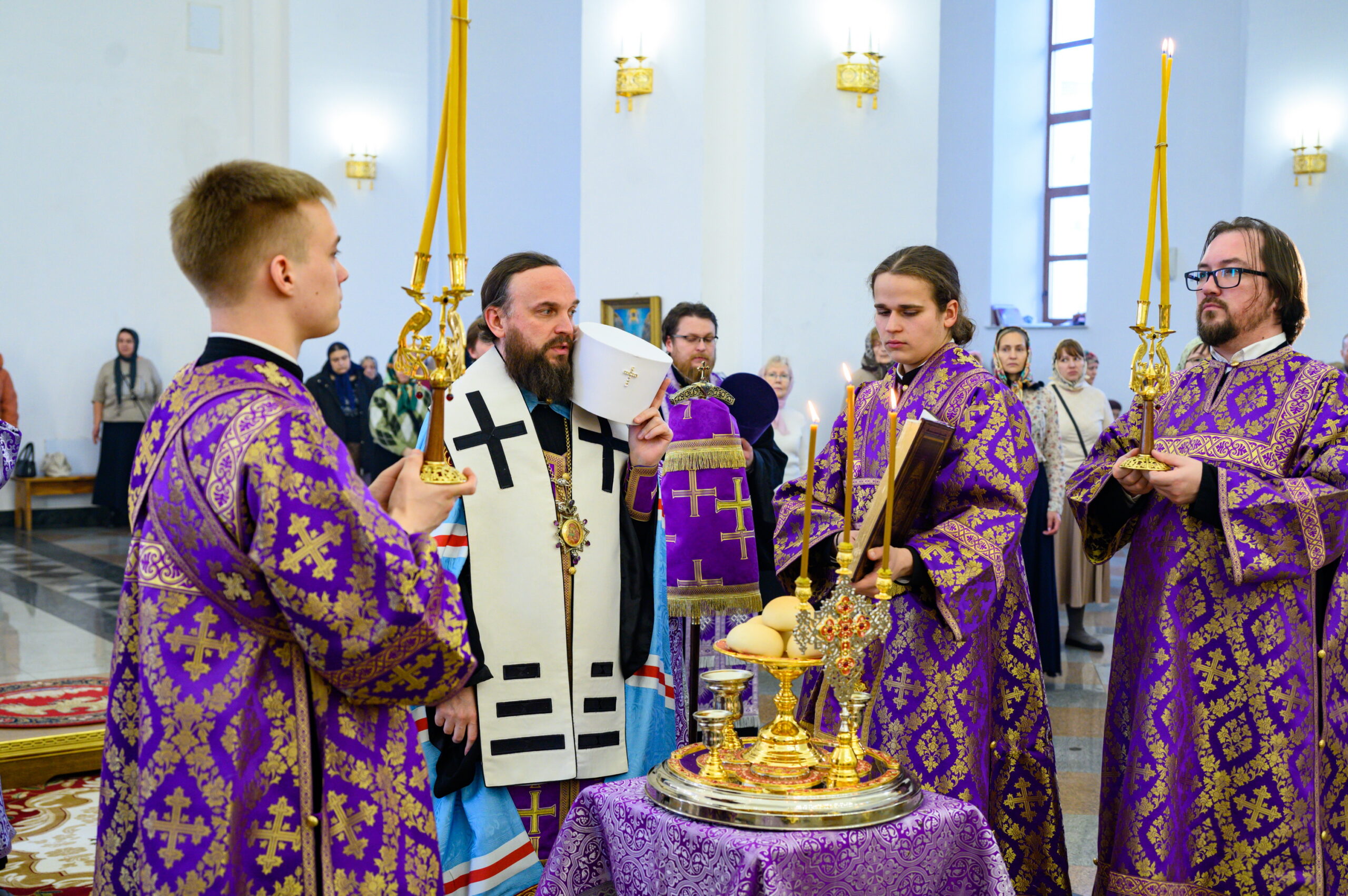 Его Высокопреосвященству сослужили: клирик храма Успения Пресвятой Богородицы в Останкине протоиерей Серафим Недосекин; а также клирики храма Живоначальной Троицы в усадьбе Свиблово иерей Павел Ефремов и диакон Николай Арзуманов.