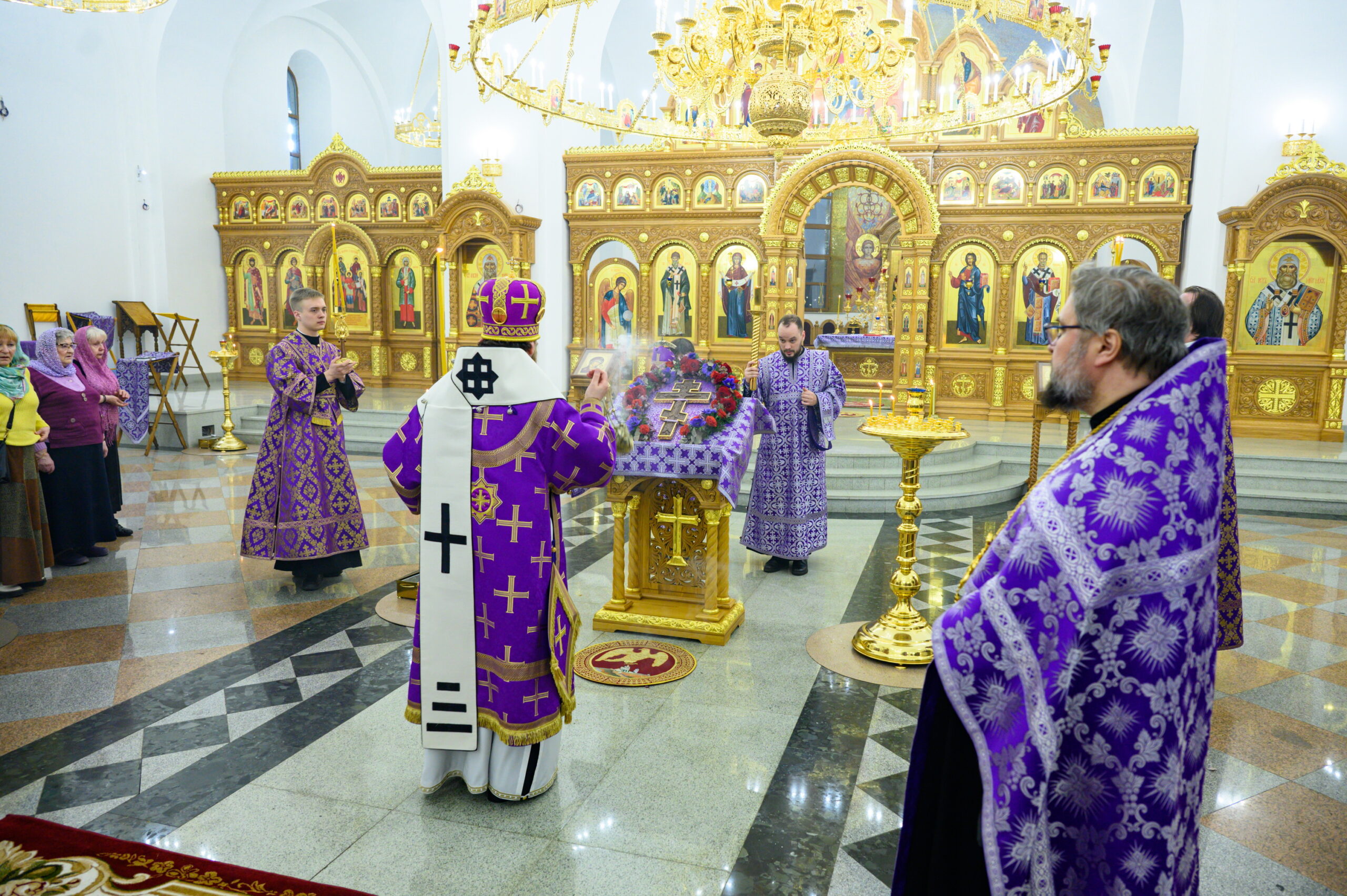 Вечером 14 марта 2026 года, накануне Недели 3-й Великого поста, Крестопоклонной, управляющий Северо-Восточным Московским викариатством митрополит Звенигородский Арсений возглавил всенощное бдение с чином выноса Честного и Животворящего Креста Господня в храме Успения Пресвятой Богородицы, Патриаршего подворья в Останкине города Москвы.
