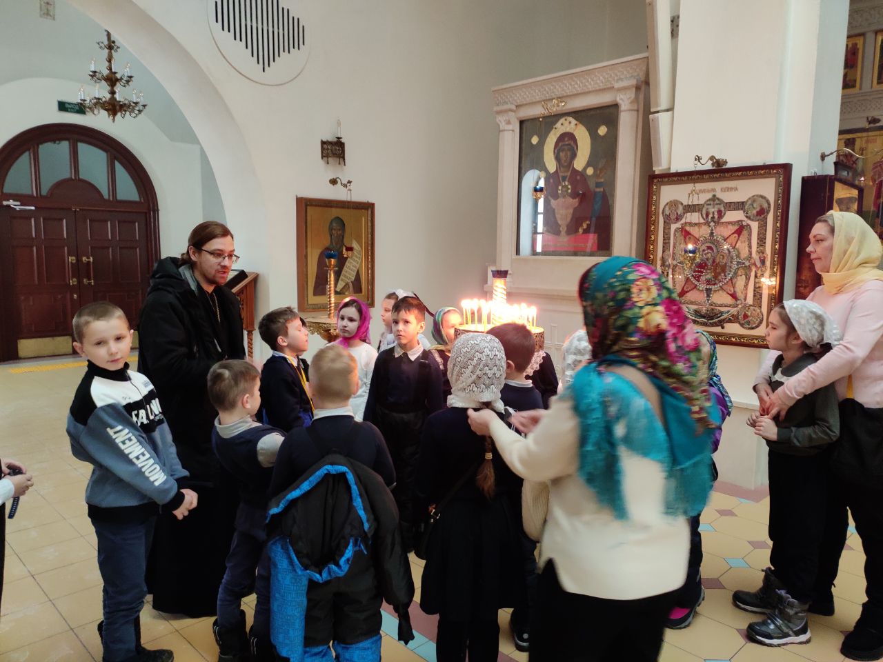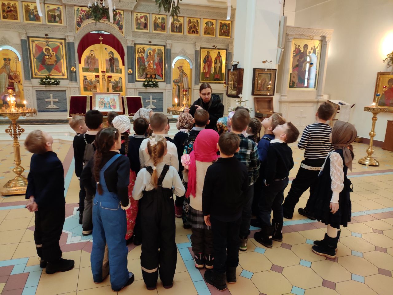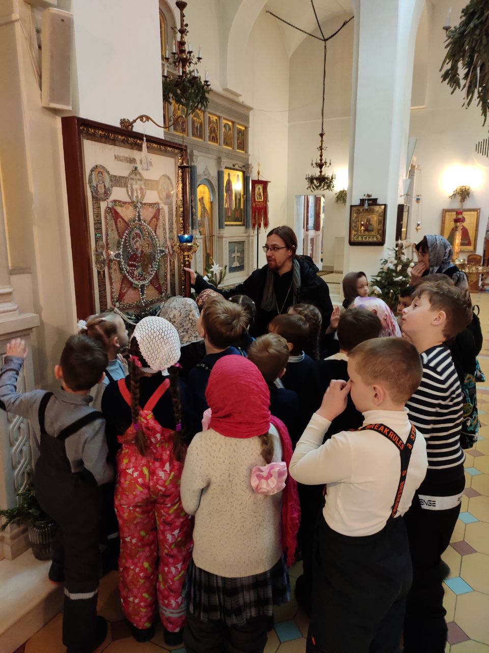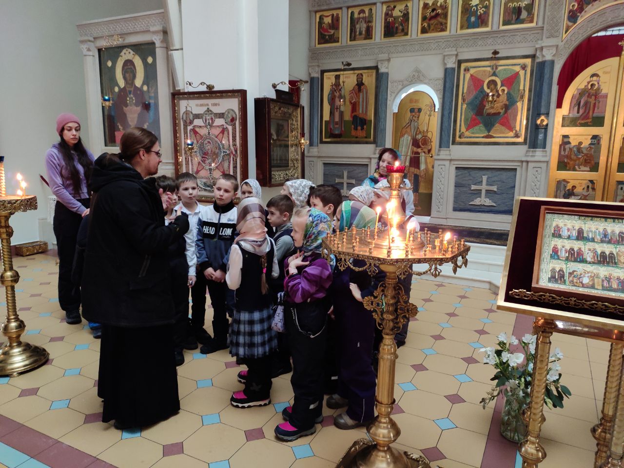 Для большинства детей это был первый опыт посещения православного храма. Отец Александр провел беседу об устройстве храма, его архитектуре и рассказал об истории чтимой иконы Божией Матери «Неопалимая Купина».