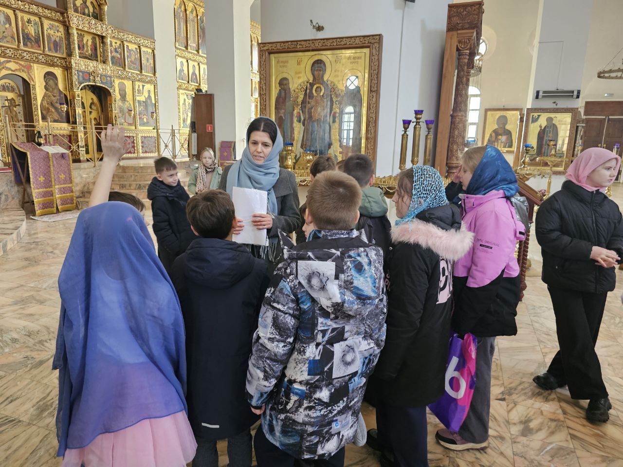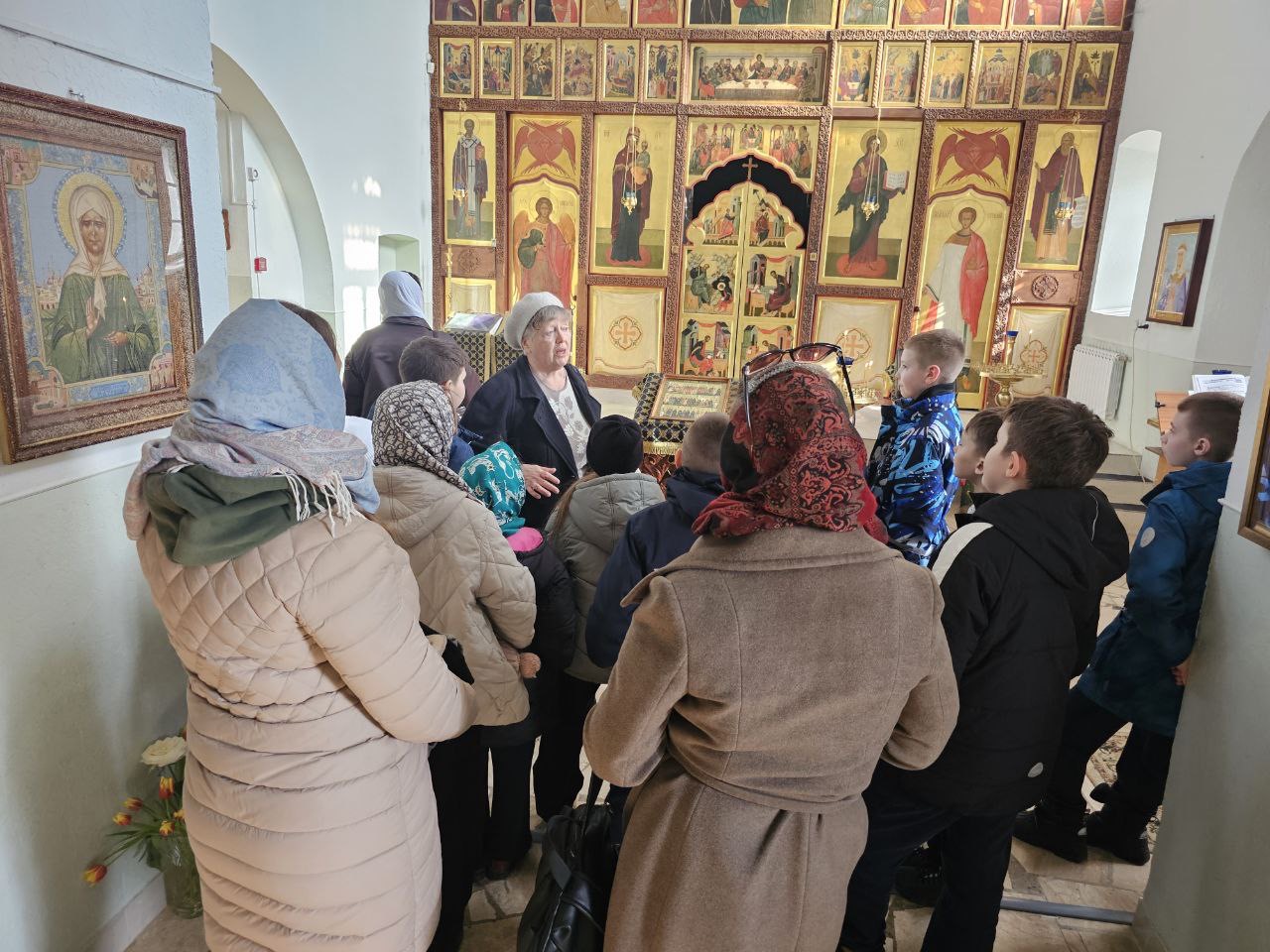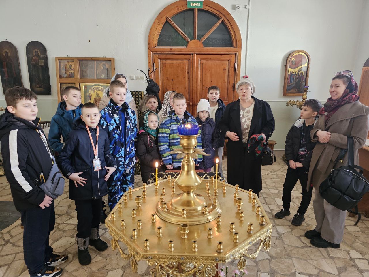 Также дети узнали об устройстве храма, познакомились с событиями Библейской истории, рассматривая праздничный ряд иконостаса придела прп. Сергия Радонежского.