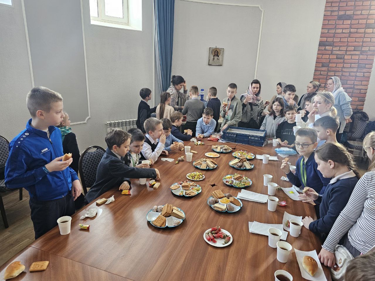 После посещения обоих храмов и небольшой экскурсии на прихрамовой территории учащихся пригласили в концеренц-зал, где они посмотрели презентацию на тему «Бибирево – моя малая Родина». Встреча завершилась дружеским чаепитием, за которым ребята делились впечатлениями и обсуждали удивительные факты из истории прихода.