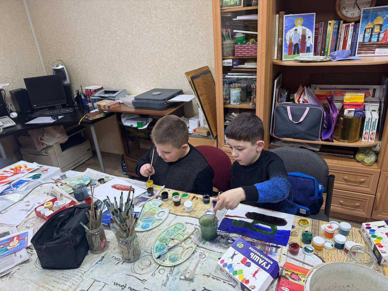 Все рисунки были размещены в притворе храма, что несомненно поддерживает дух наших защитников.