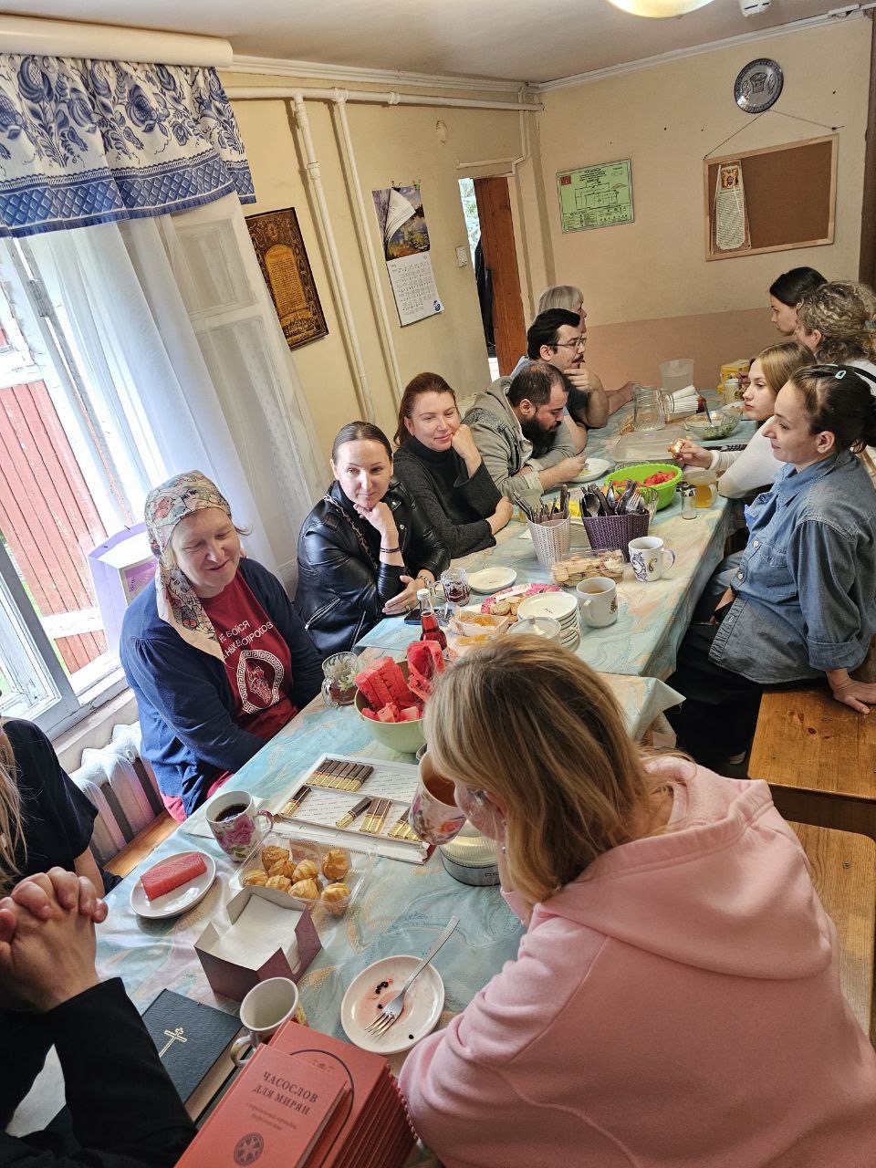 6 июля 2025 года в трапезной храма  Положения Ризы Пресвятой Богородицы во Влахерне, что в Леонове за чаепитием собрались волонтеры, помогающие в реставрации храма. Есть работы, которые не требуют специальной квалификации, и к ним с энтузиазмом приобщаются прихожане.
