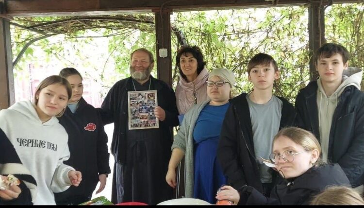 Сначала ребята с воспитателями молились за Божественной литургией, а затем в уютной беседке состоялась встреча с клириком храма протоиереем Димитрием Мышевым. Как обычно беседа получилось очень теплой и душевной, ребята с радостью делились с батюшкой своими историями и, конечно же, задавали много различных вопросов.