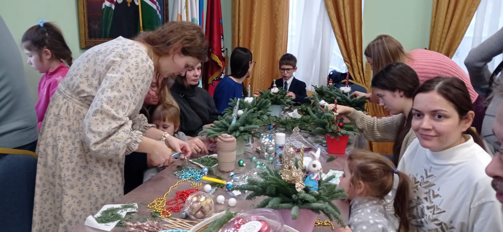 Конечно же, не обошлось без творческих мастер-классов. Педагоги и прихожане устроили целую ярмарку мастеров. Мастер-класс по рождественской ëлочной флористике провела церковный флорист и православный блогер и волонтëр, Александра Добрынина. Александра помогла в сборе средств на подарки раненым в госпиталь к Рождеству Христову.