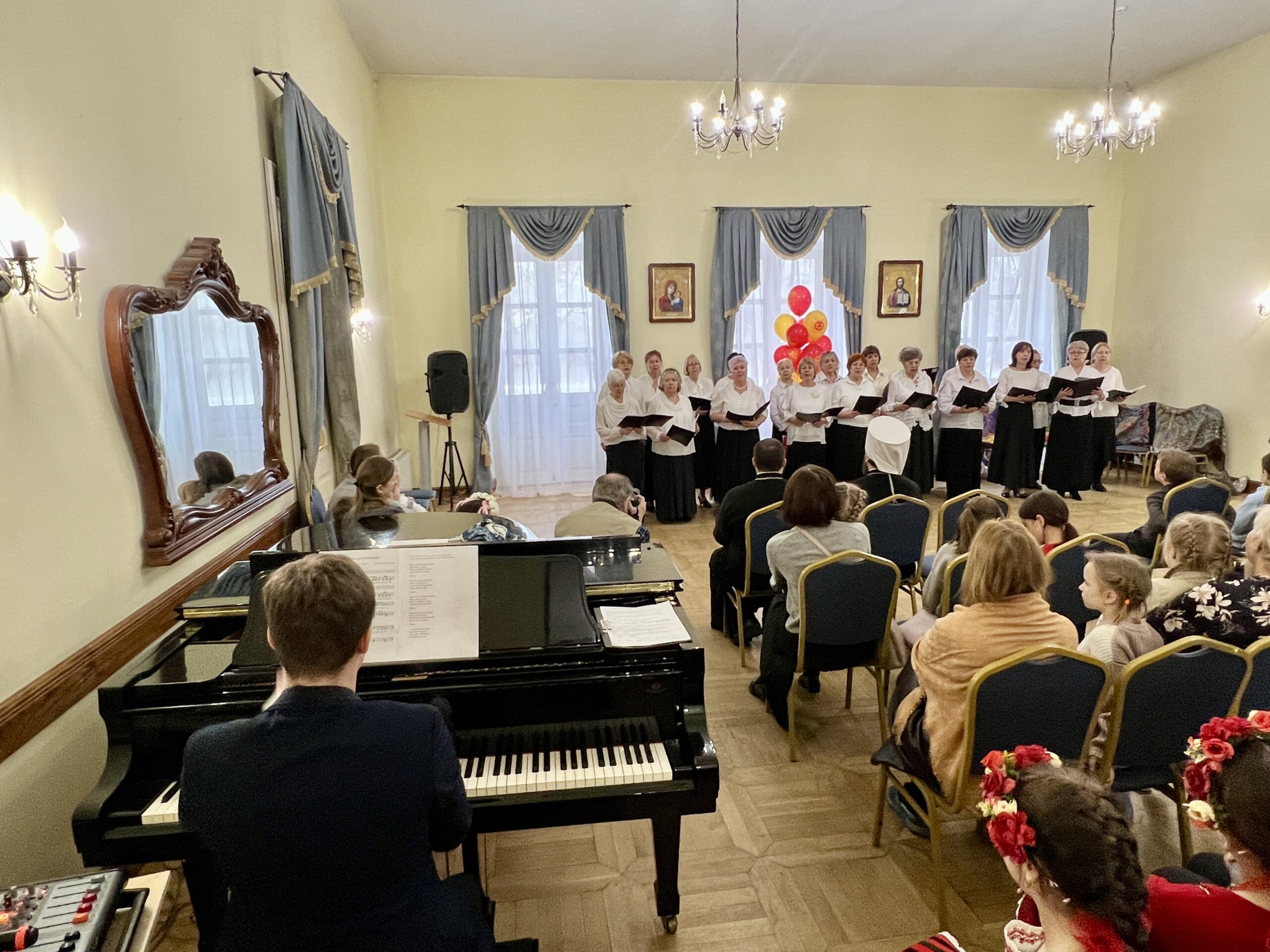 Завершилось праздничное мероприятие выступлением хора «Алые зори», проекта «Московского долголетие» при храме Живоначальной Троицы в Усадьбе Свиблово.