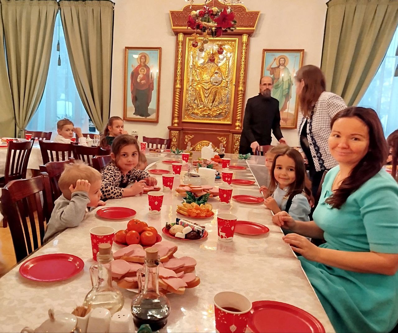 После концертной части всех ждали игры и забавы на свежем воздухе, которые нельзя оставили равнодушными и детей, и взрослых. А согреться и продолжить общение можно было за большим общим столом в приходской трапезной, где всех участников ждало дружеское чаепитие.