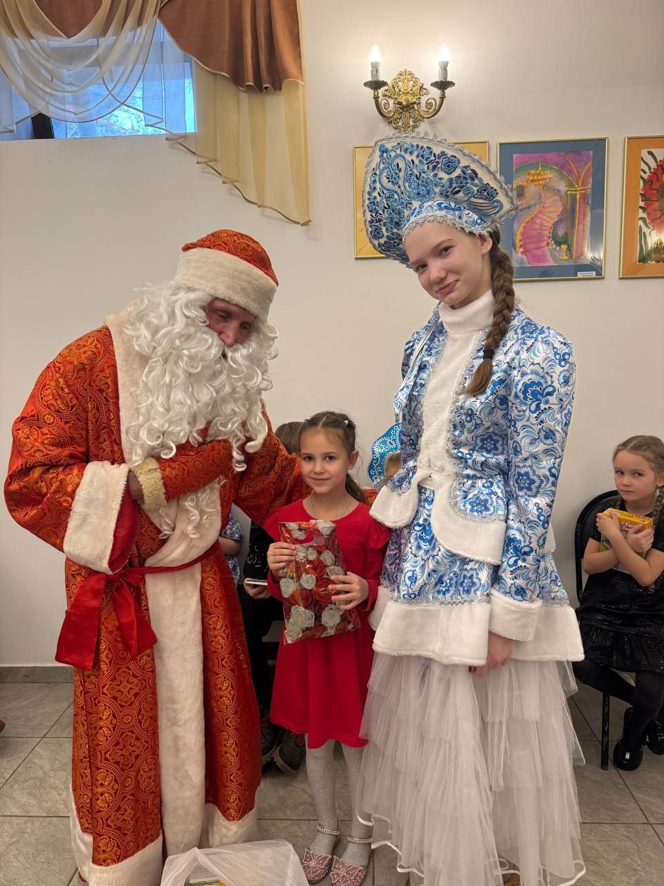 В гости к детям пришли дед Мороз со Снегурочкой и принесли подарки. Дети играли на музыкальных инструментах и пели колядки, рассказывали стихи. Все получили по подарку к празднику. После мероприятия состоялось чаепитие.
