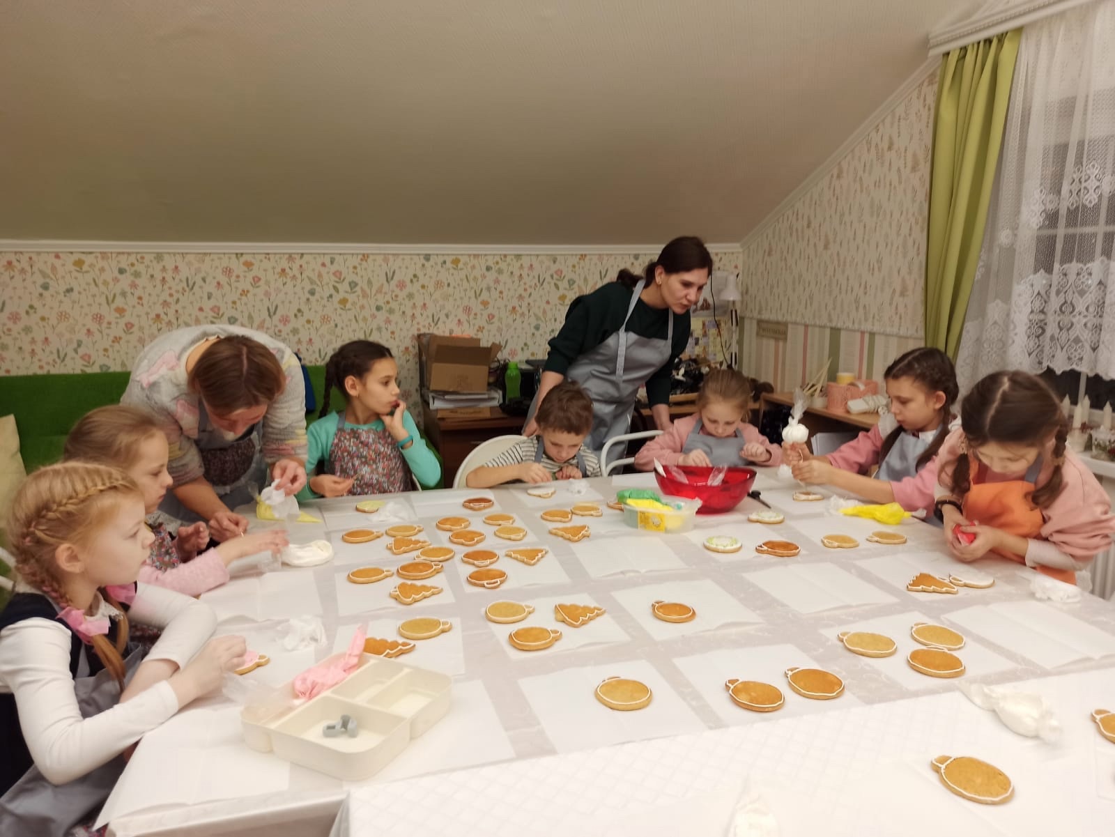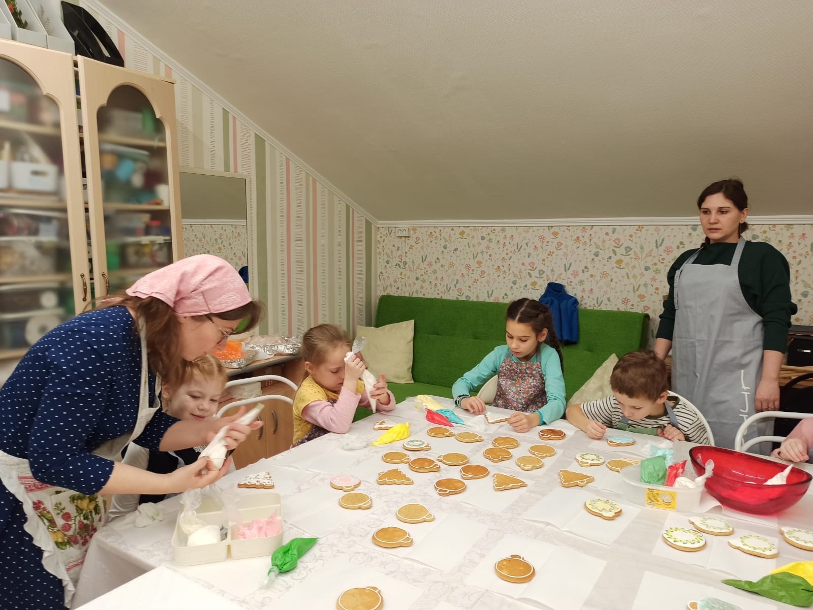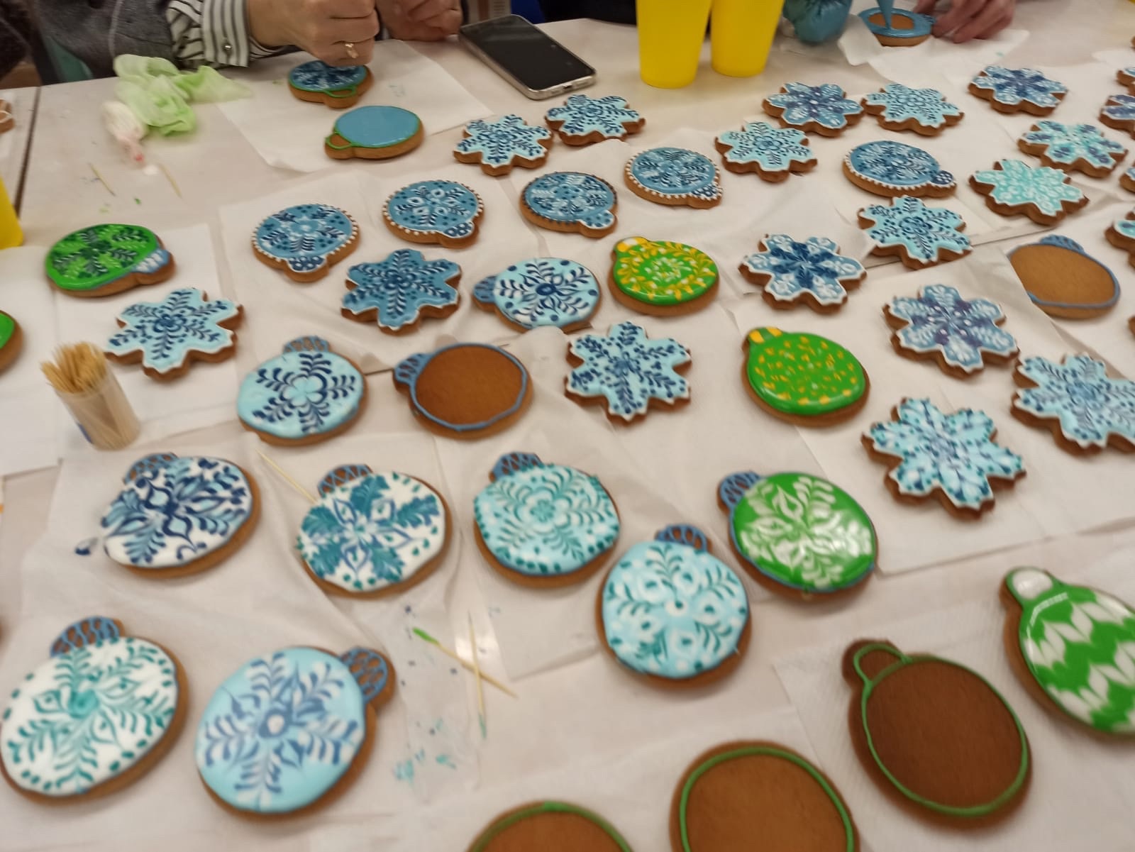 Под руководством Ирины Зенкиной прихожанки «Семейного клуба», а также старшие и младшие девочки из воскресной школы изготавливают и расписывают пряники. Это будут рождественские подарки, которые пойдут на благотворительность в разные социальные места, окормляемые священниками храма. Большая часть из них будет отправлена в военный госпиталь.
