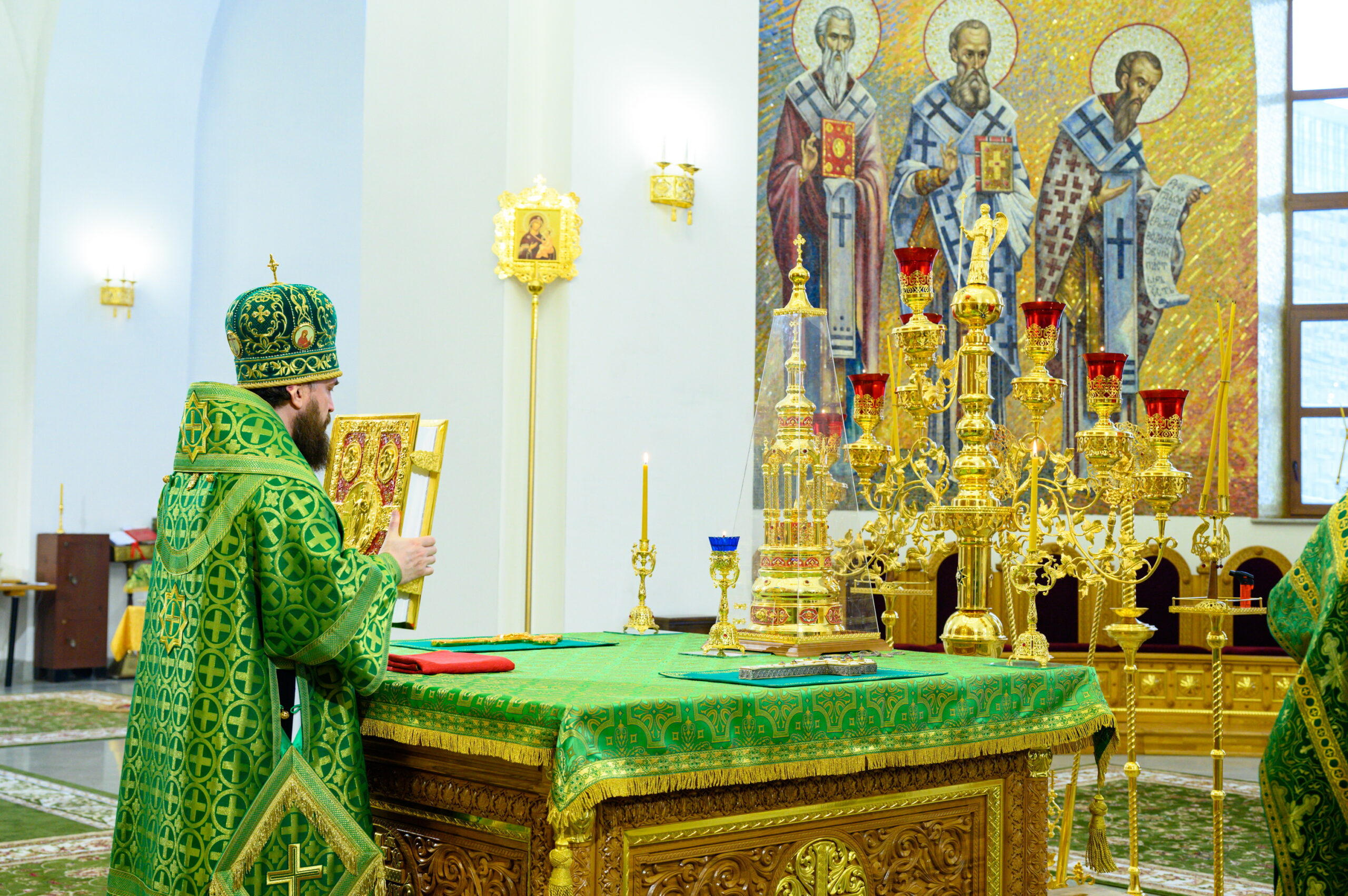 В день памяти всех преподобных отцов, в подвиге просиявших, митрополит Арсений совершил Божественную литургию в храме Успения Пресвятой Богородицы в Останкине