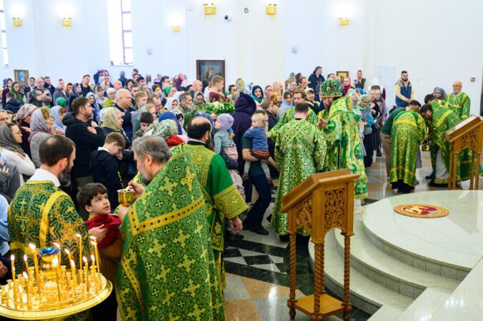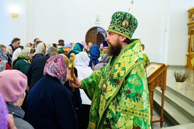 В завершении богослужения духовенство во главе с архипастырем совершили славление праздника.