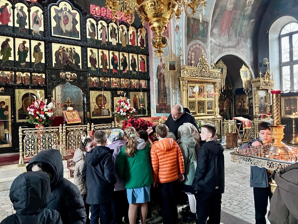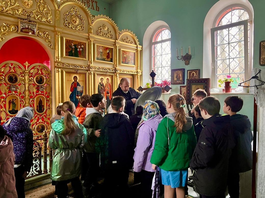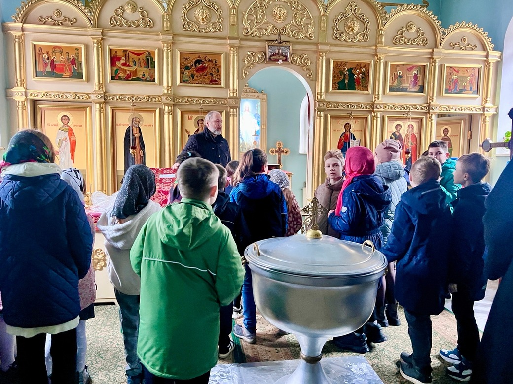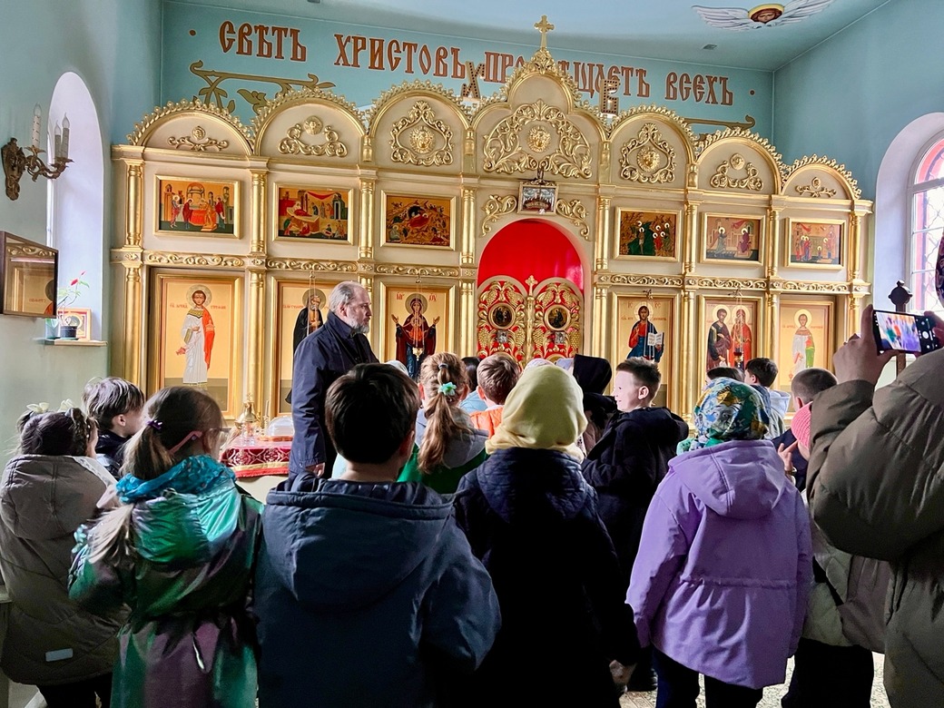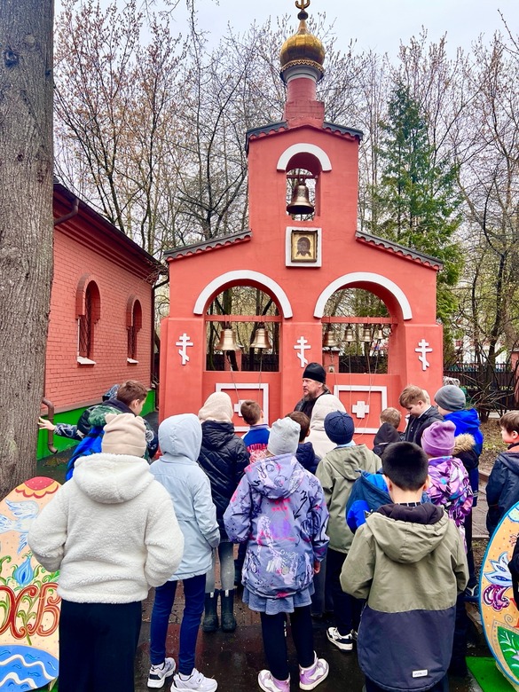 Клирики храма — священник Феодор Сидоров и диакон Георгий Муратов рассказали ребятам об истории храма и празднике Пасхи, показали где и как крестят детей и взрослых, объяснили значение и правила колокольного звона, дав возможность позвонить в колокола самим школьникам.