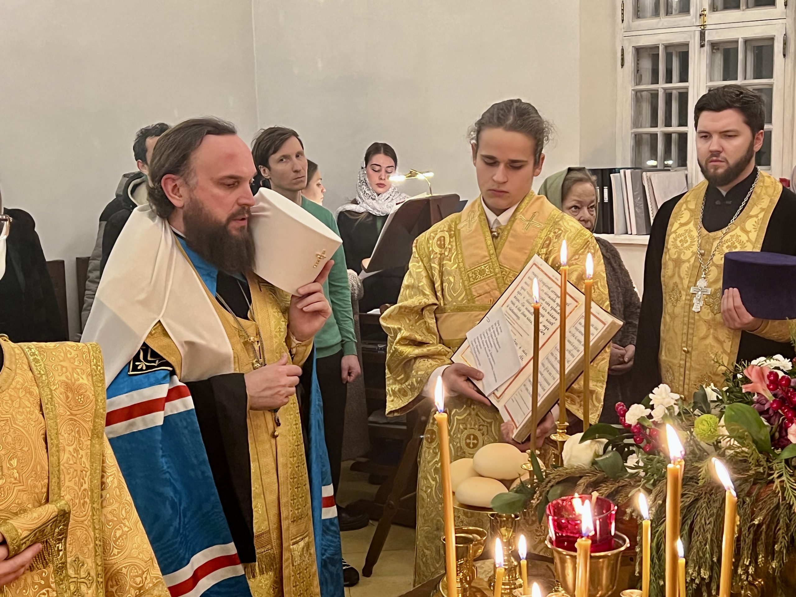 Его Высокопреосвященству сослужили: и.о. руководителя секретариата Северо-Восточного викариатства иерей Сергий Бычков, а также клирики храма Живоначальной Троицы в Усадьбе Свиблово протоиерей Сергий Рождественский и иерей Димитрий Горбик.