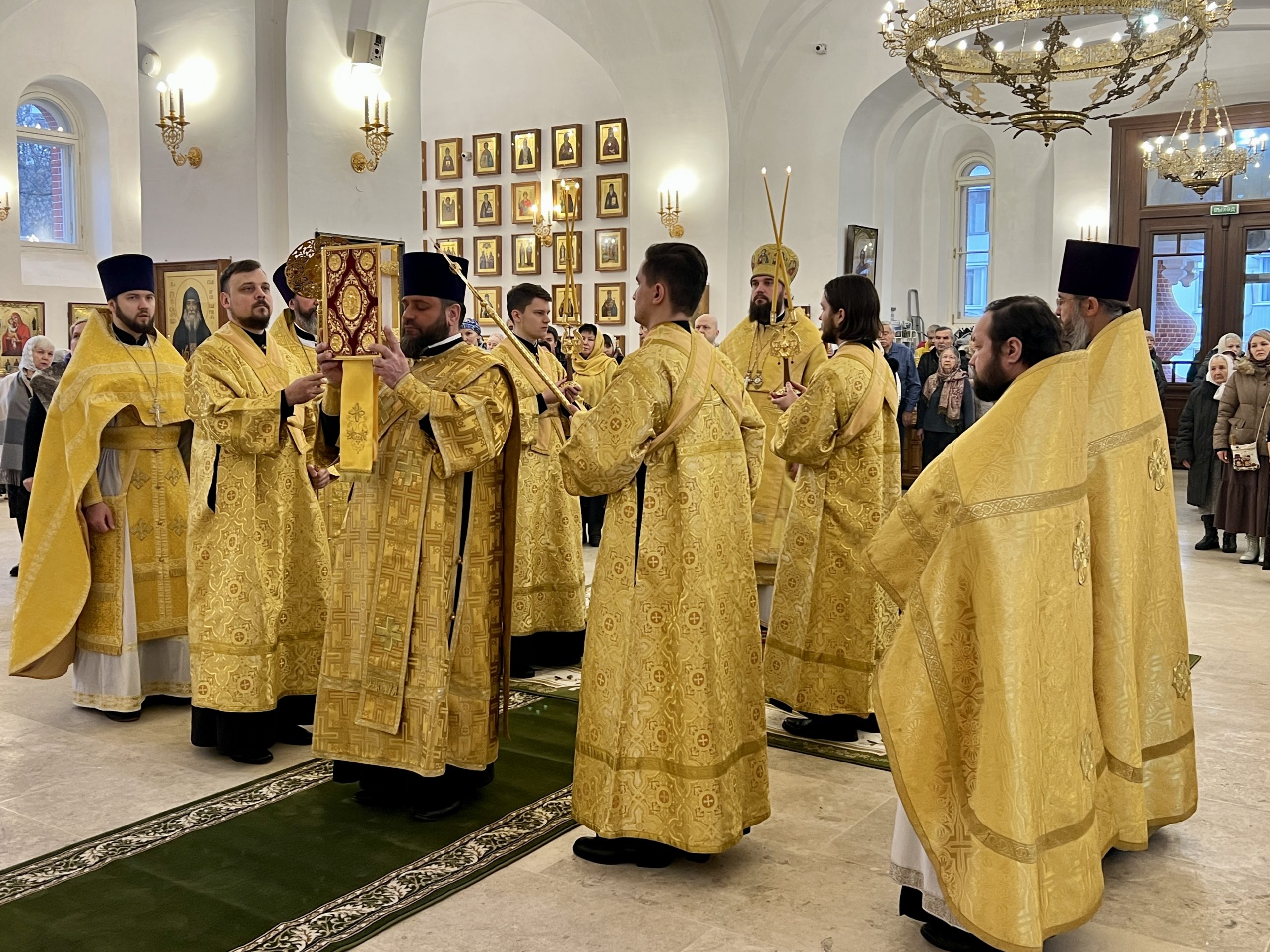 29 декабря 2024 года, в Неделю 27-ю по Пятидесятнице, святых праотец, управляющий Северо-Восточным Московским викариатством митрополит Звенигородский Арсений совершил Божественную литургию в храме Живоначальной Троицы при бывшем приюте Бахрушиных города Москвы.