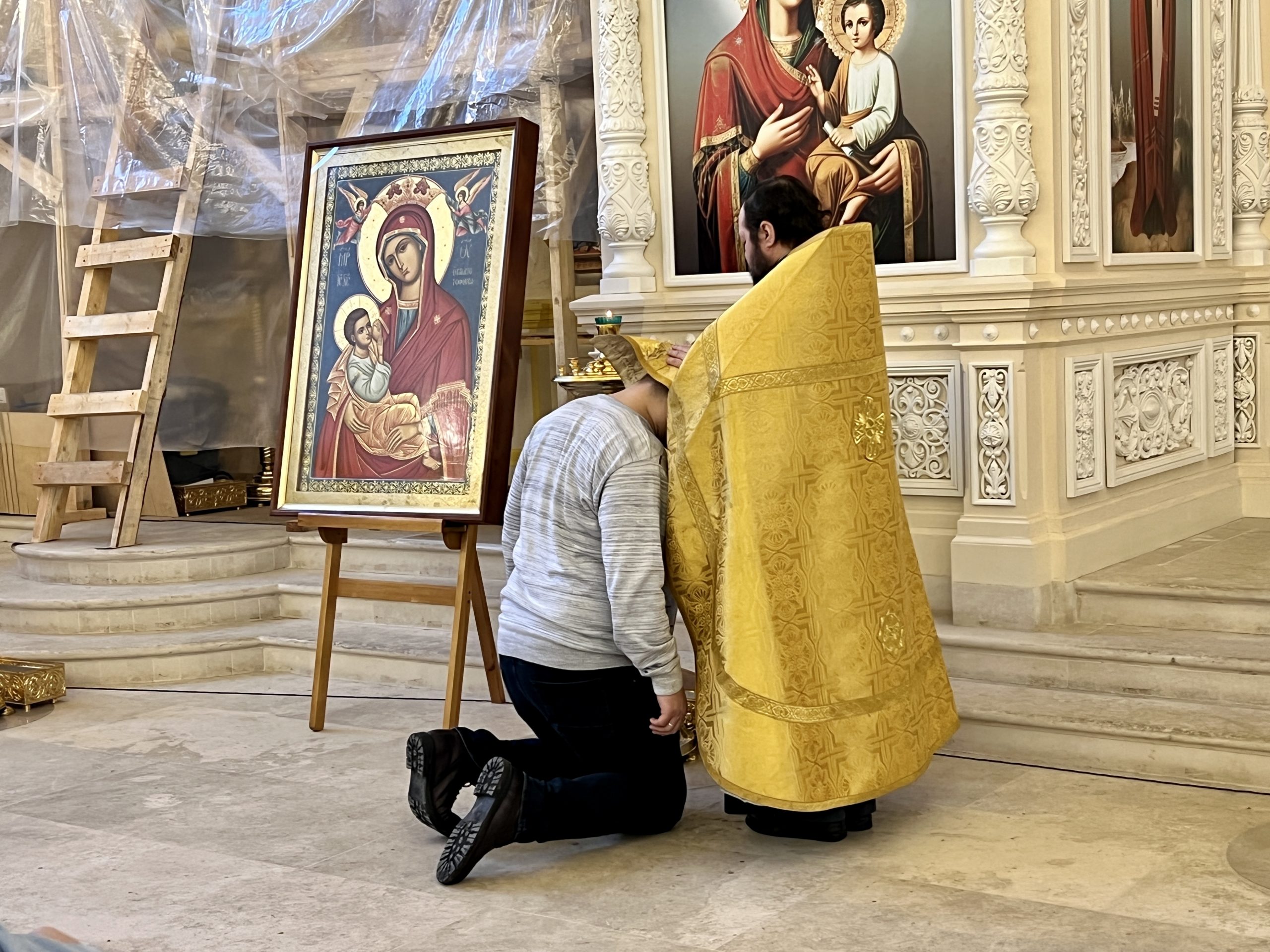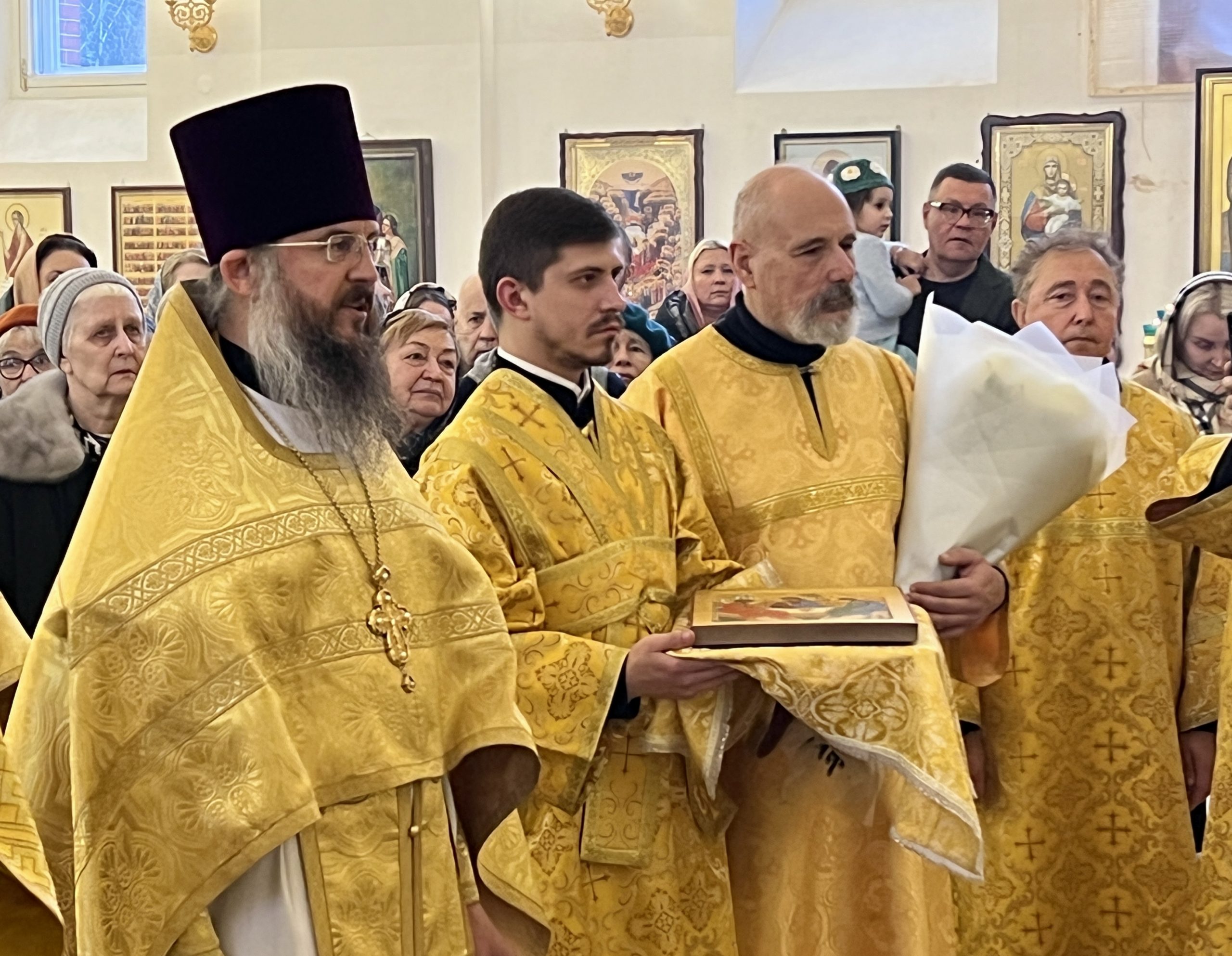По окончании богослужения настоятель храма Живоначальной Троицы при бывшем приюте Бахрушиных протоиерей Ростислав Ярема приветствовал Владыку и поблагодарил его за совместную молитву и преподнёс архипастырю в дар образ Святой Троицы.