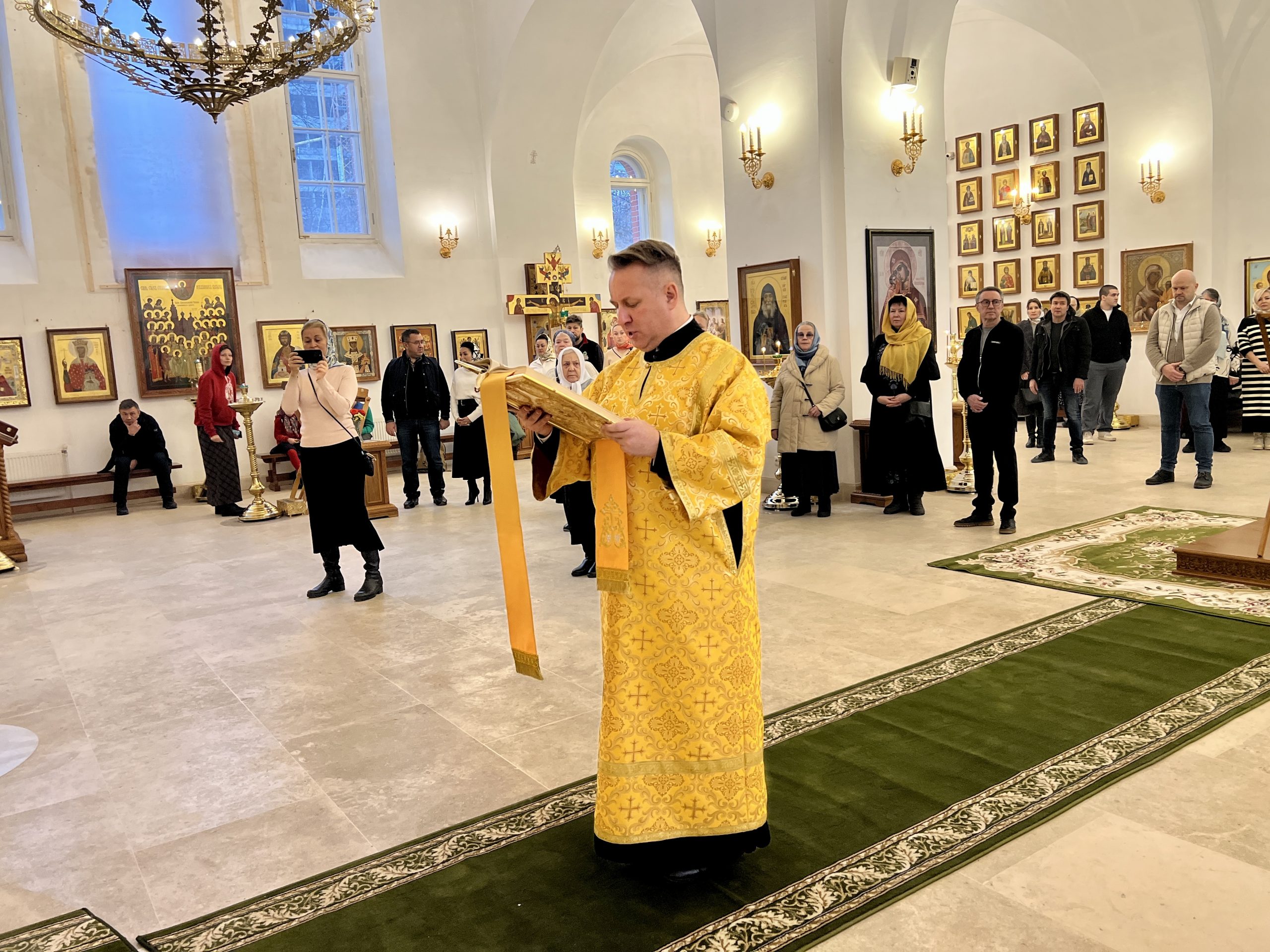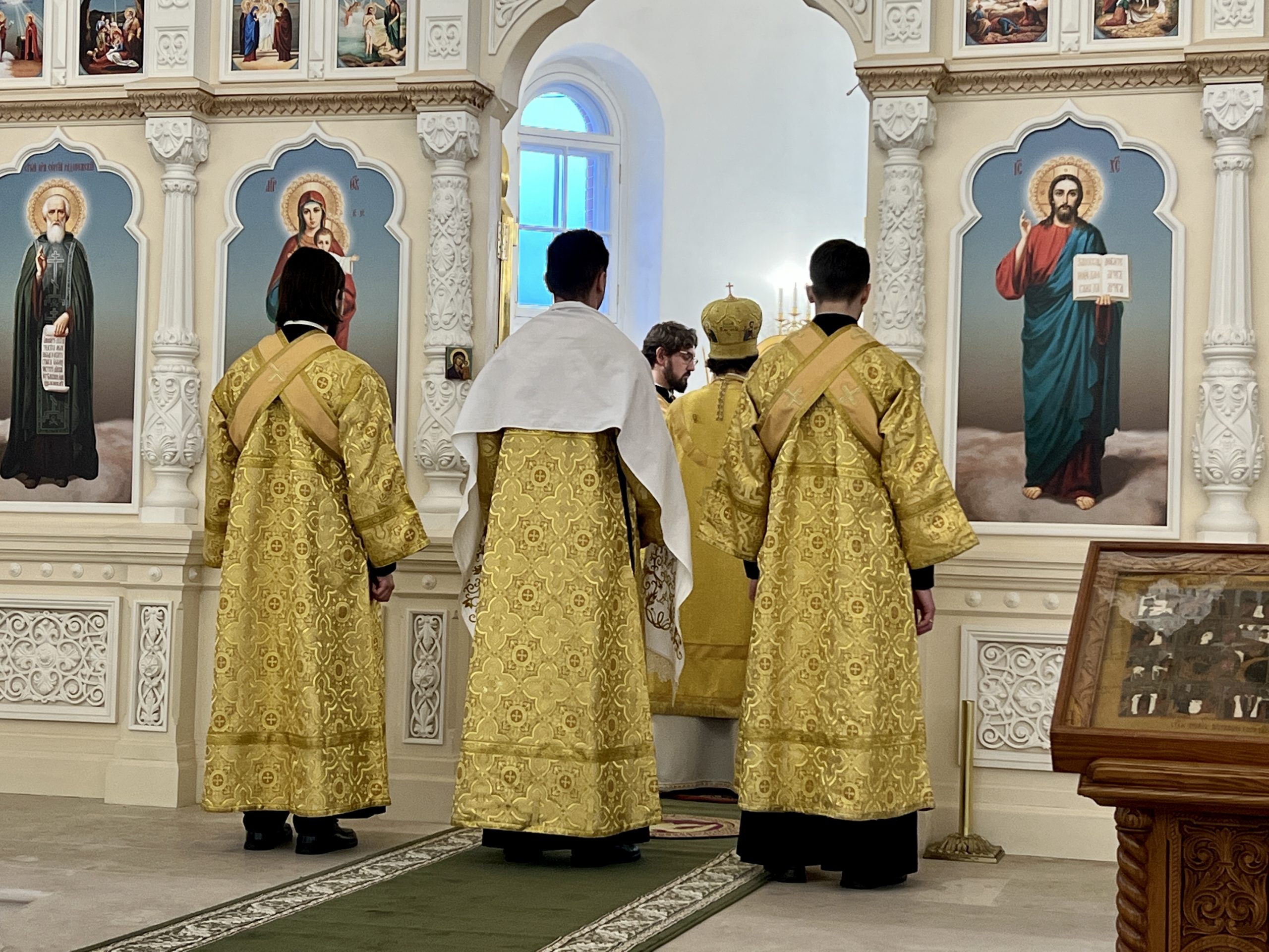 Диаконский чин возглавил протодиакон Василий Куфлик, клирик храма Тихвинской иконы Божией Матери, Патриаршего подворья в Алексеевском города Москвы.