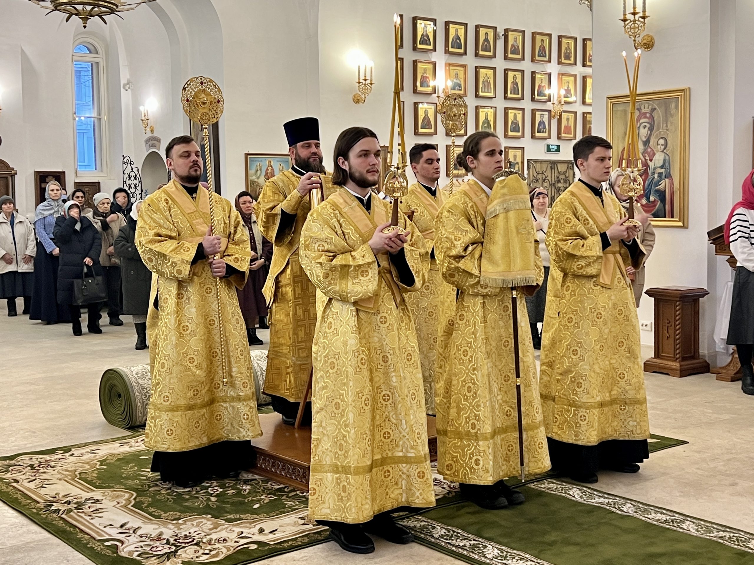 Его Высокопреосвященству сослужили: благочинный храмов Троицкого округа города Москвы, настоятель храма иконы Божией Матери «Нечаянная радость» в Марьиной Роще города Москвы протоиерей Георгий Климов; настоятель храма Живоначальной Троицы при бывшем приюте Бахрушиных протоиерей Ростислав Ярема; и.о. руководителя секретариата Северо-Восточного викариатства иерей Сергий Бычков; а также клирик храма Живоначальной Троицы при бывшем приюте Бахрушиных иерей Александр Наумов.
