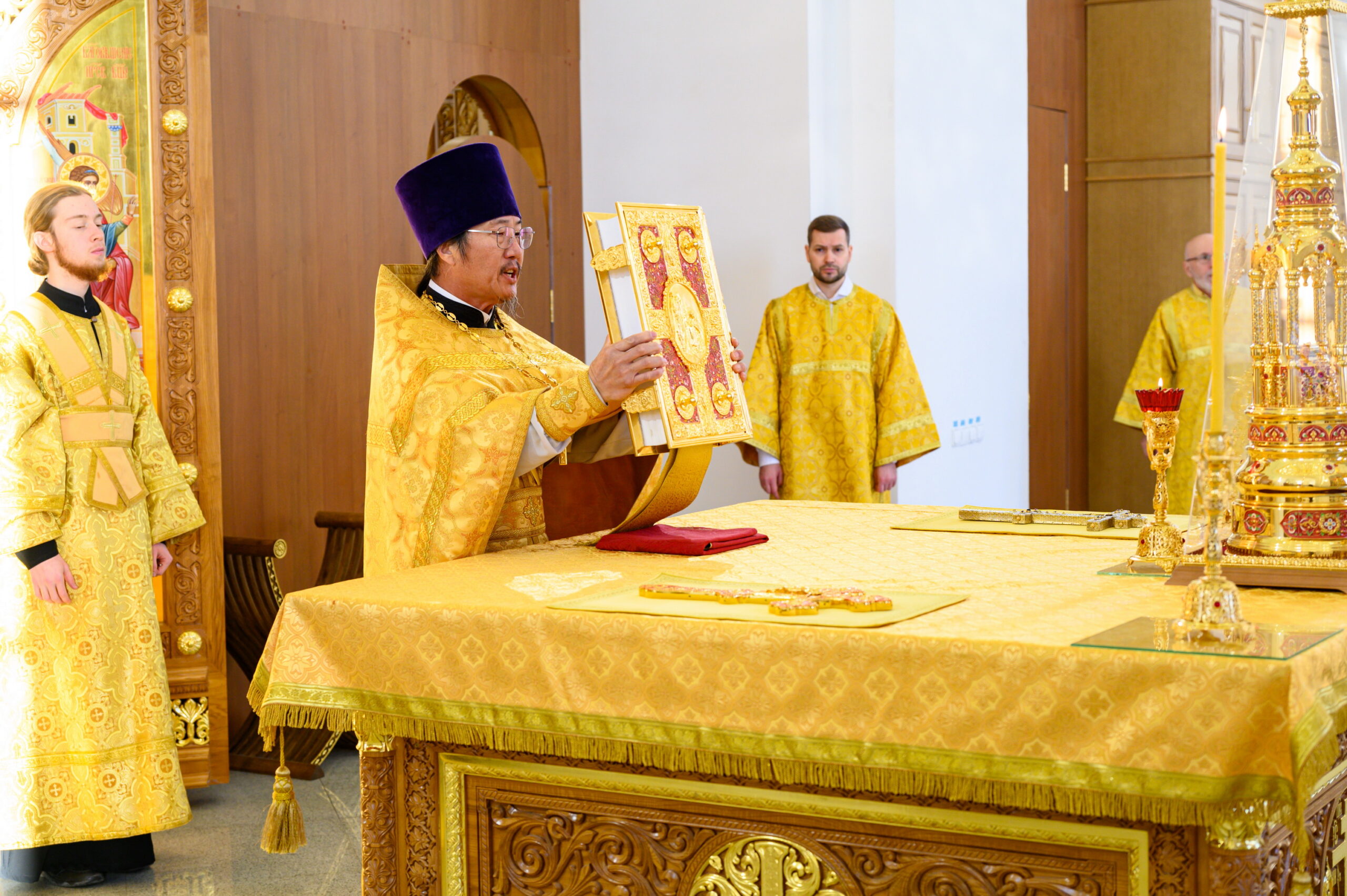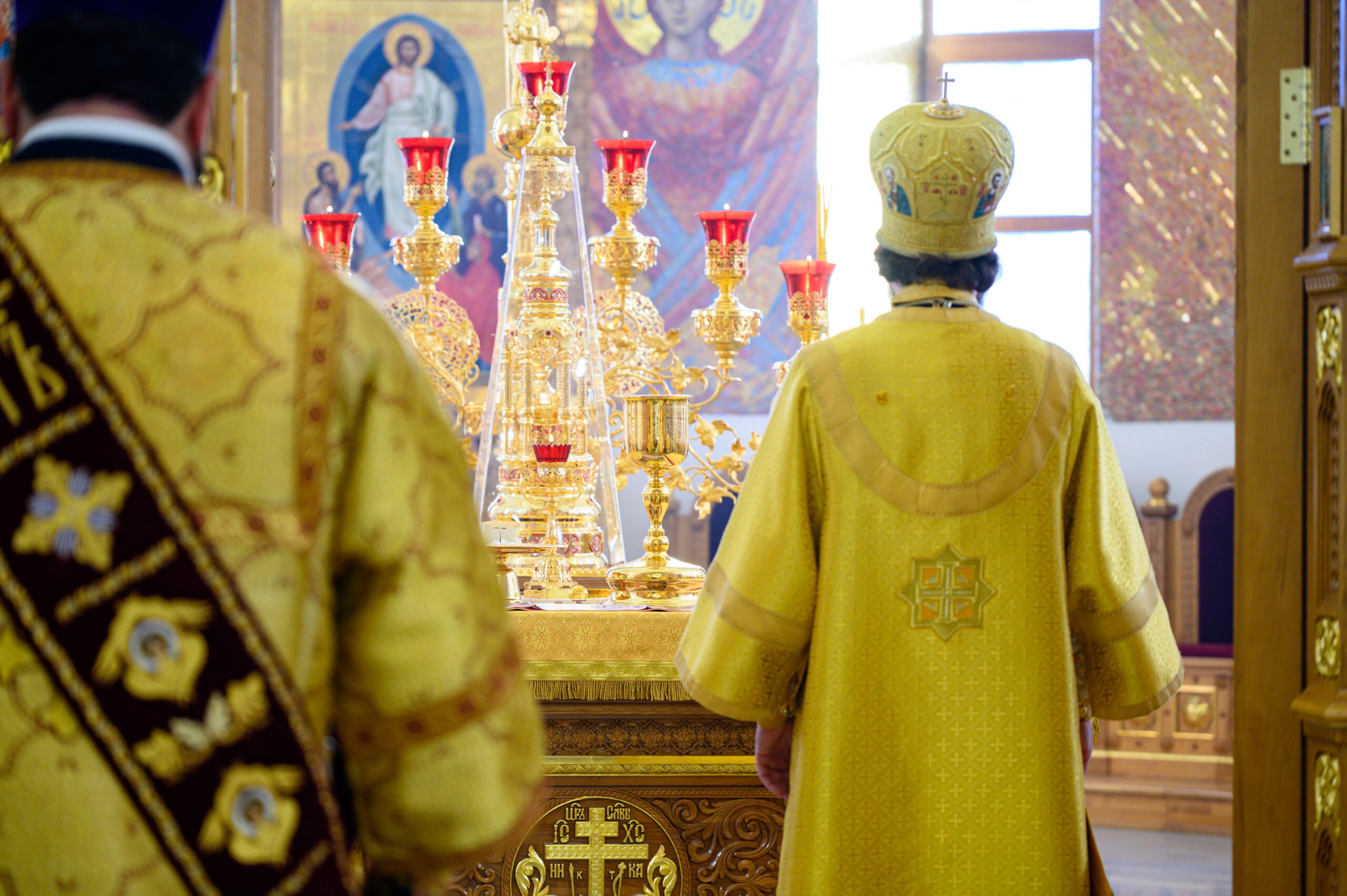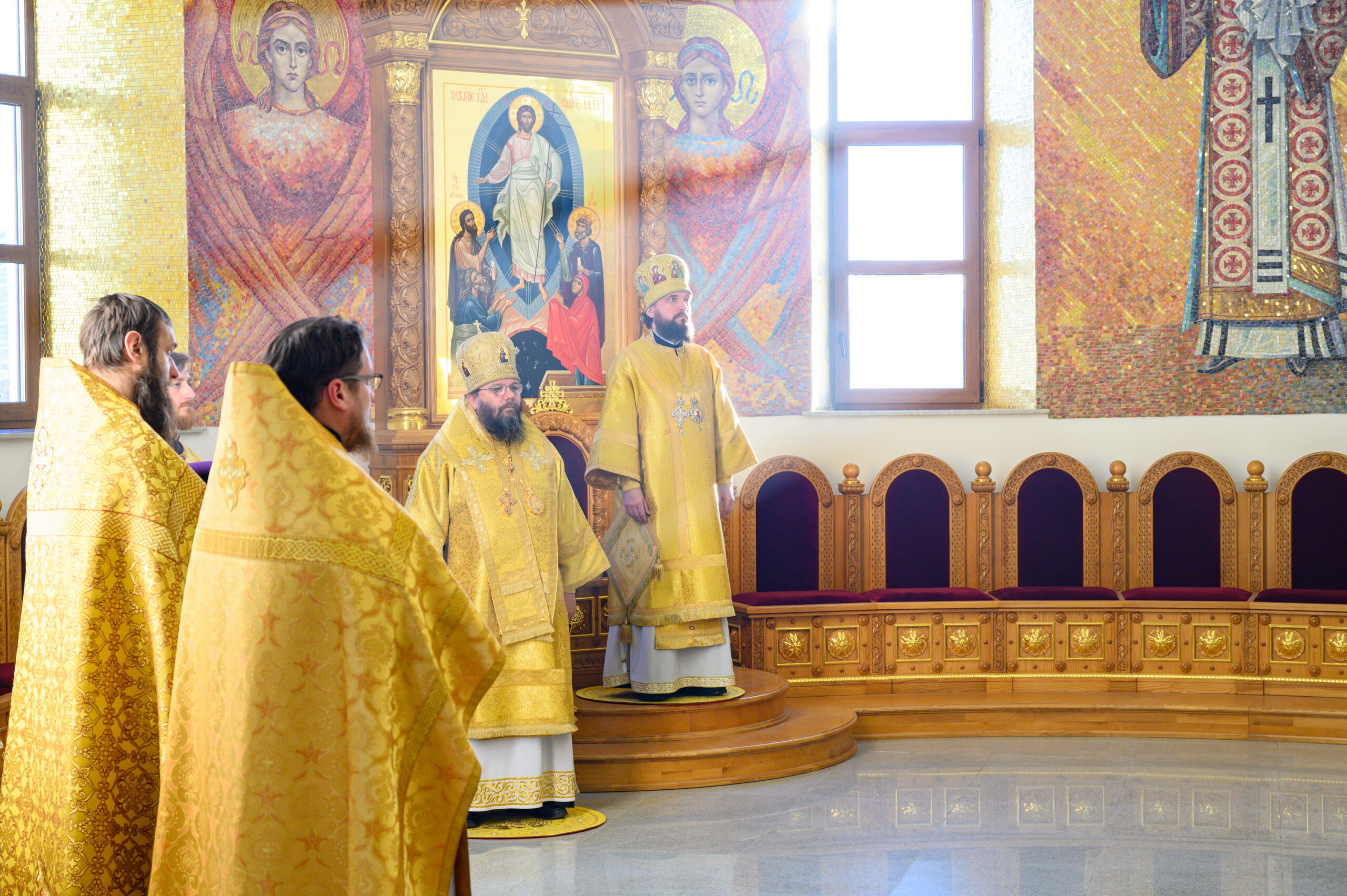Его Высокопреосвященству сослужили: митрополит Псковский и Порховский Матфей; старший священник храма Успения Пресвятой Богородицы в Останкине иерей Роман Хан; и.о. настоятеля храма иконы Божией Матери «Отрада и Утешение» в Ярославском иерей Димитрий Савенков; и.о. настоятеля храма равноапостольной княгини Ольги, Патриаршего подворья в Останкино иерей Иоанн Янушек; а также клирики храма Живоначальной Троицы в усадьбе Свиблово — иерей Димитрий Горбик, иерей Павел Ефремов и иерей Иоанн Кузякин.