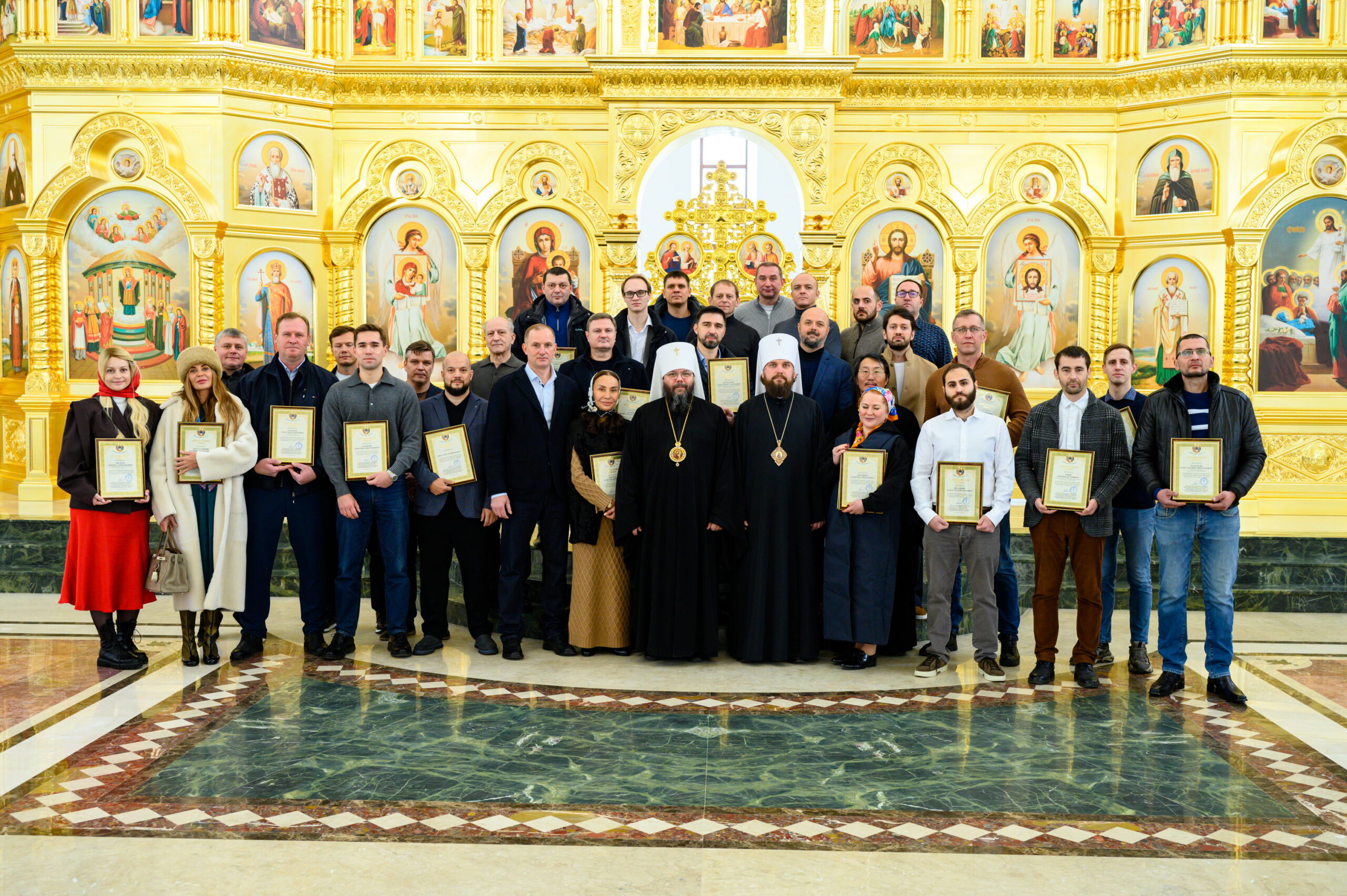 В завершение владыка Арсений наградил благодарственными архиерейскими грамотами строителей и благоукрасителей за усердные труды в деле строительства храма Успения Пресвятой Богородицы в Останкине.