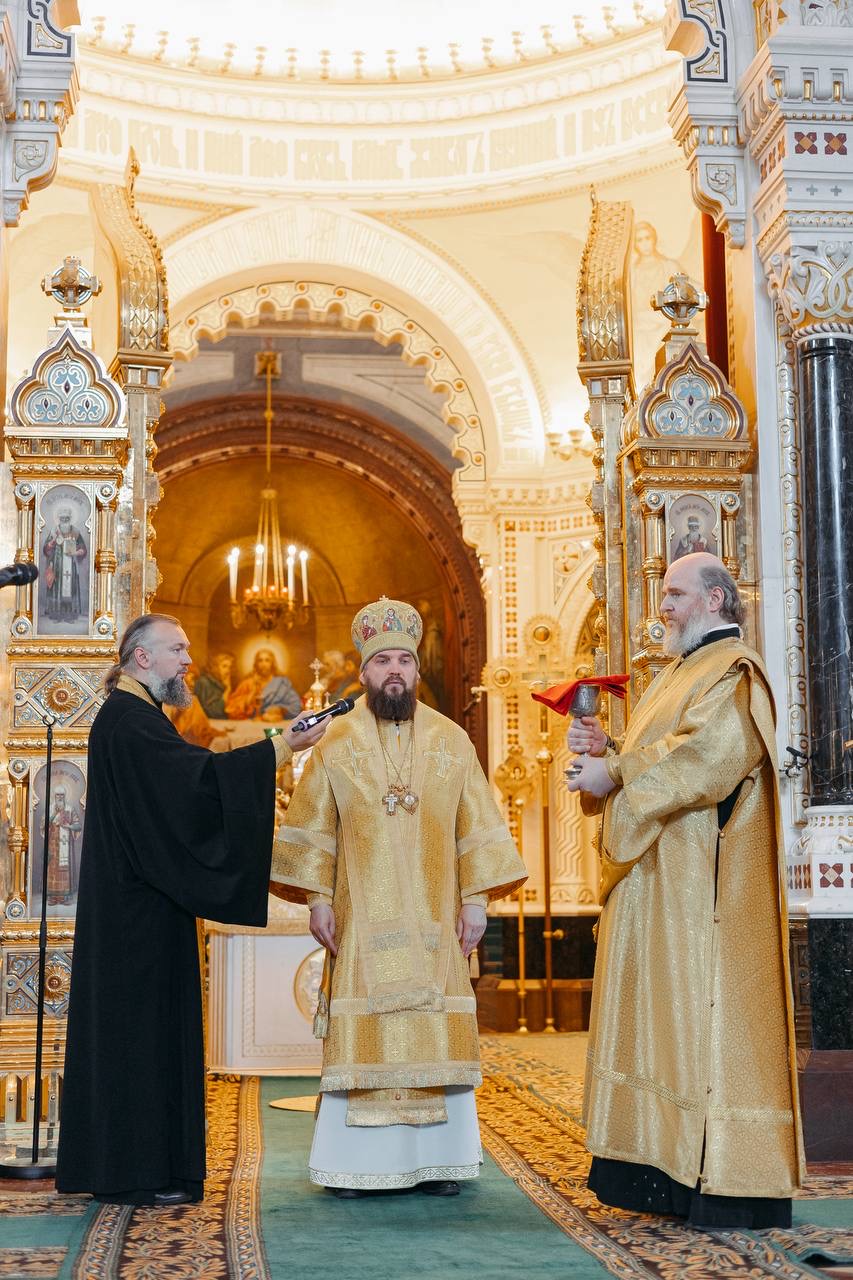 Его Высокопреосвященству также сослужили: епископ Павлово-Посадский Силуан, заместитель управляющего делами Московской Патриархии; епископ Истринский Серафим, председатель Синодального отдела по делам молодежи, настоятель Крутицкого Патриаршего подворья; епископ Егорьевский Мефодий, наместник Николо-Угрешского монастыря, ректор Православного Свято-Тихоновского гуманитарного университета; протопресвитер Владимир Диваков, секретарь Святейшего Патриарха по г. Москве, протоиерей Михаил Рязанцев, ключарь Храма Христа Спасителя, благочинные округов Московской (городской) епархии, столичное духовенство. Диаконский чин возглавил Патриарший архидиакон Константин Барган.