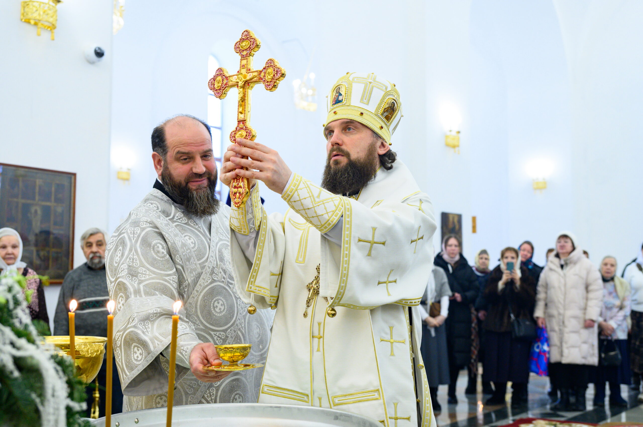 После Литургии митрополит Арсений совершил чин Великого освящения воды. После чего окропил агиасмой всех молящихся.