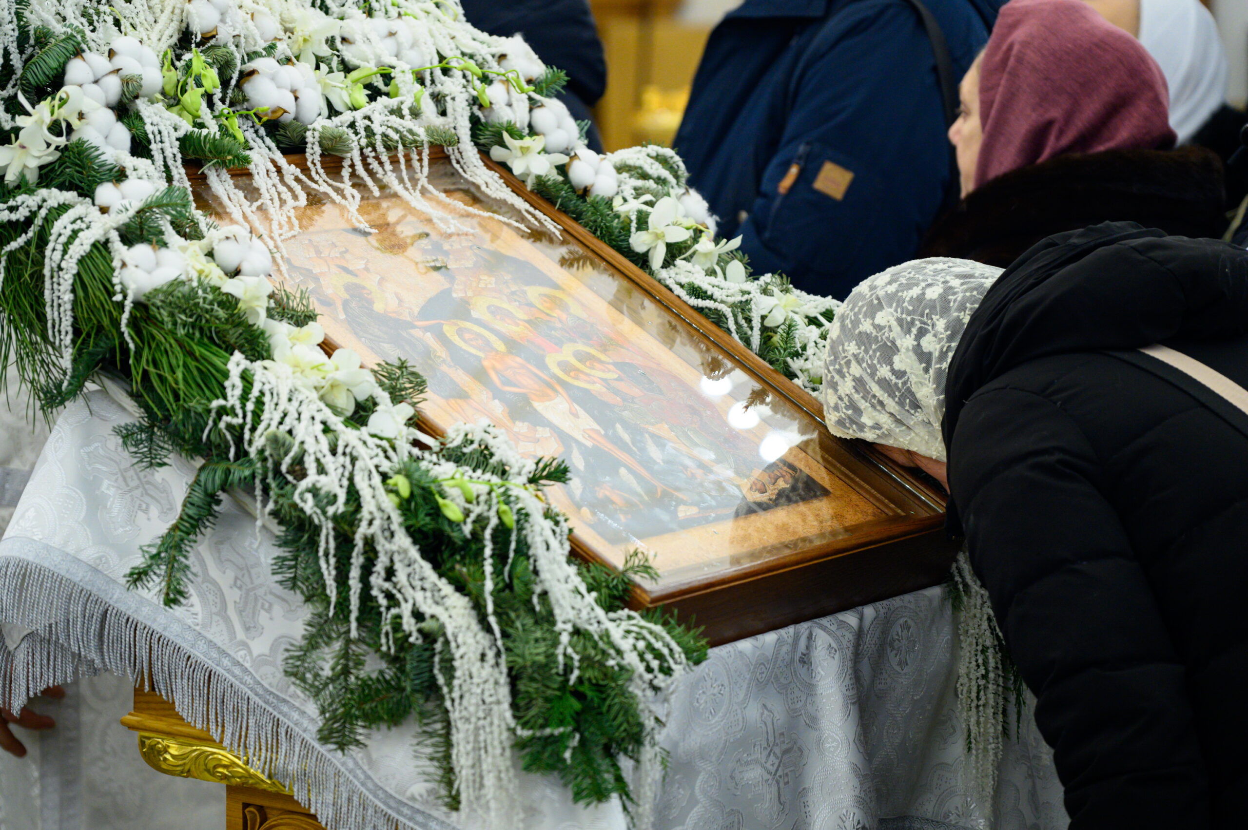 Затем перед праздничной иконой Крещения Господня, возложенной на центральный аналой храма, духовенство во главе с архипастырем совершили славление.