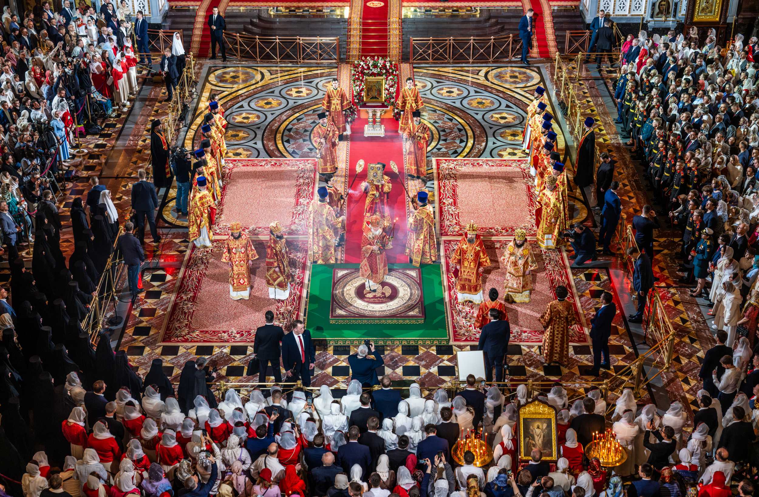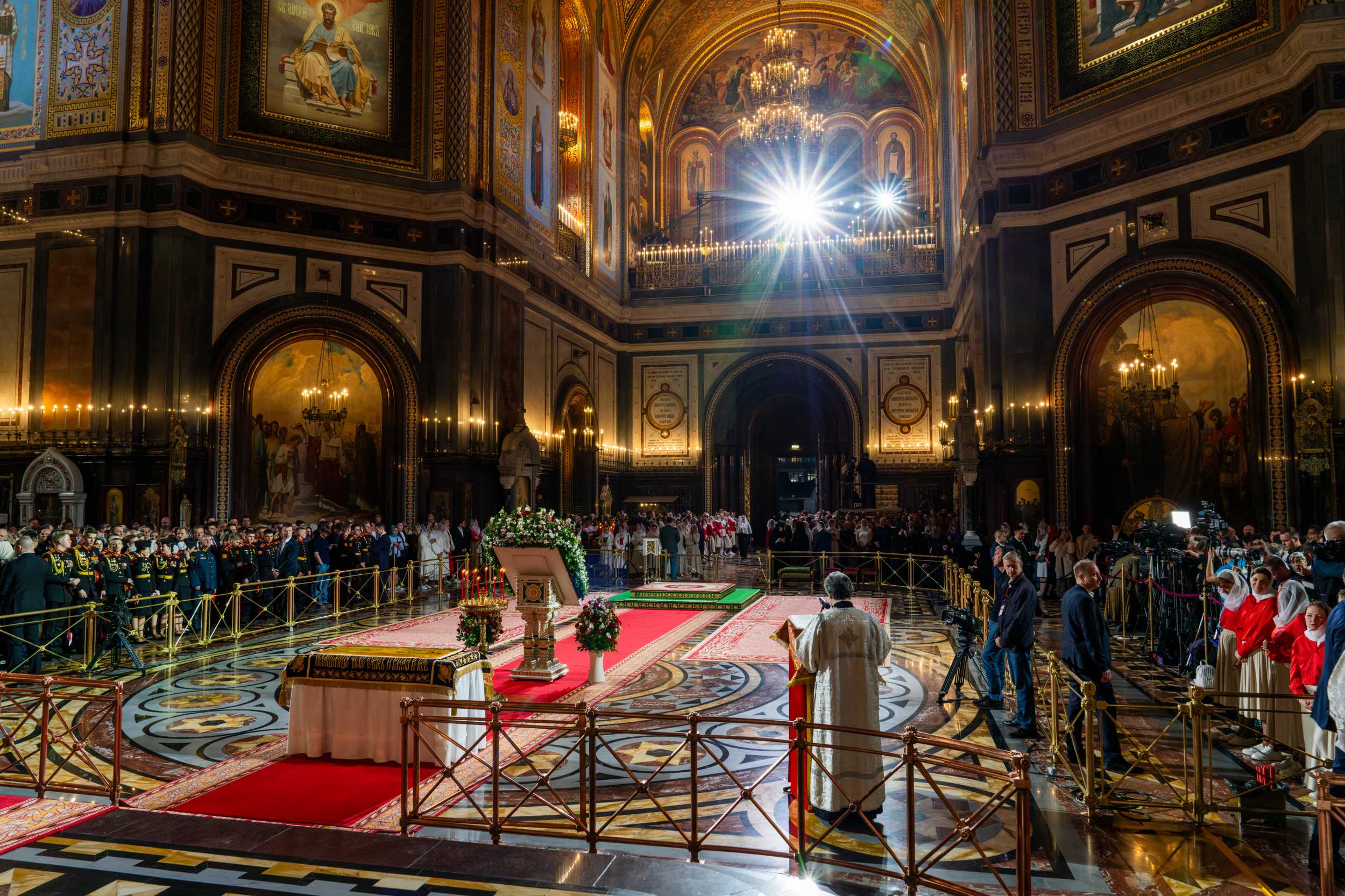 Пасхальное богослужение в Храме Христа Спасителя посетили Президент Российской Федерации В.В. Путин и мэр г. Москвы С.С. Собянин.