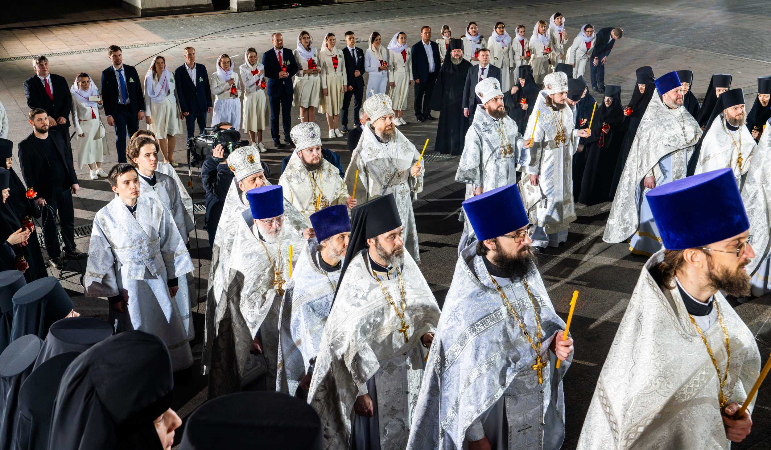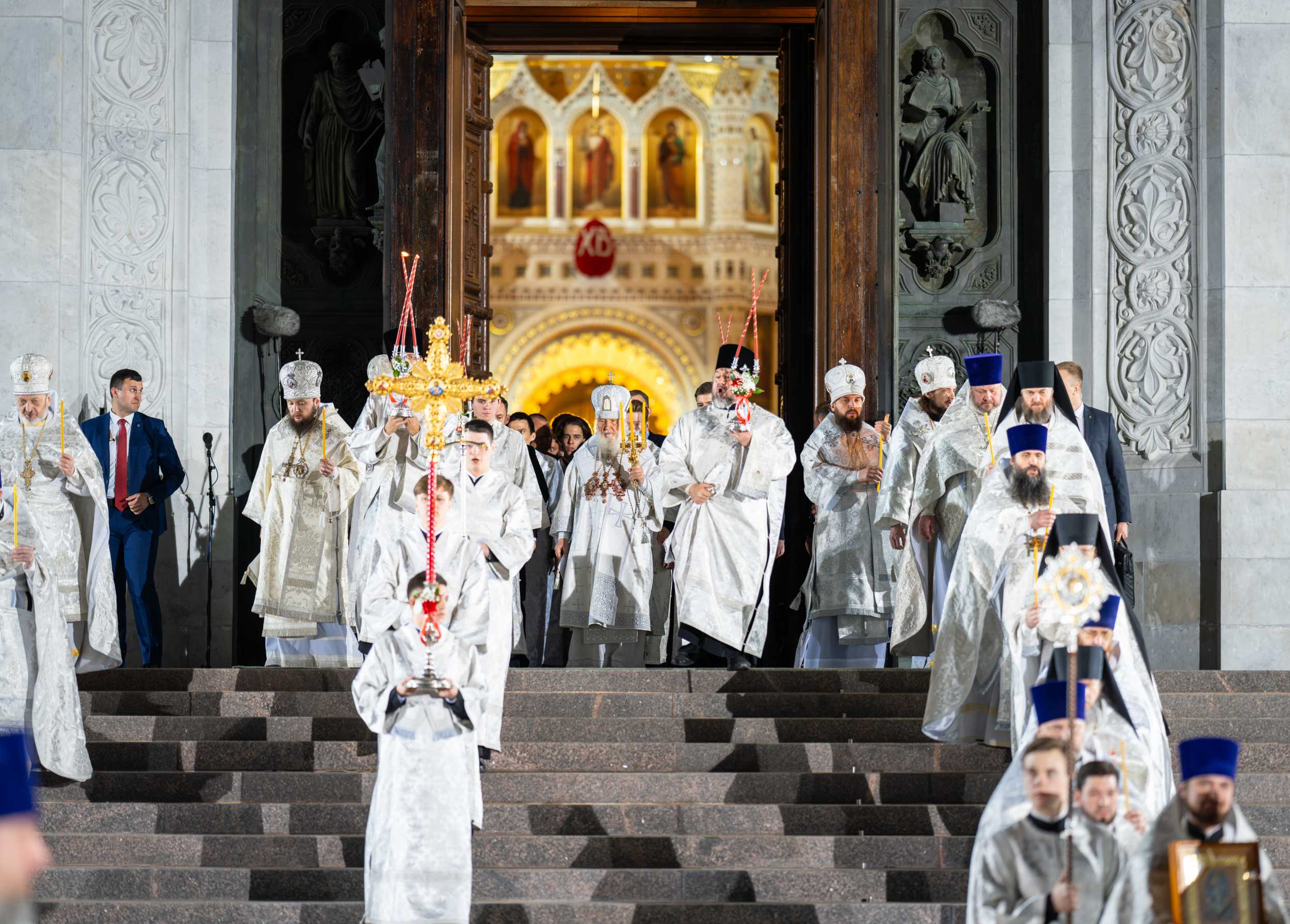 Под пение стихиры «Воскресение Твое, Христе Спасе» был совершен крестный ход вокруг Храма Христа Спасителя.