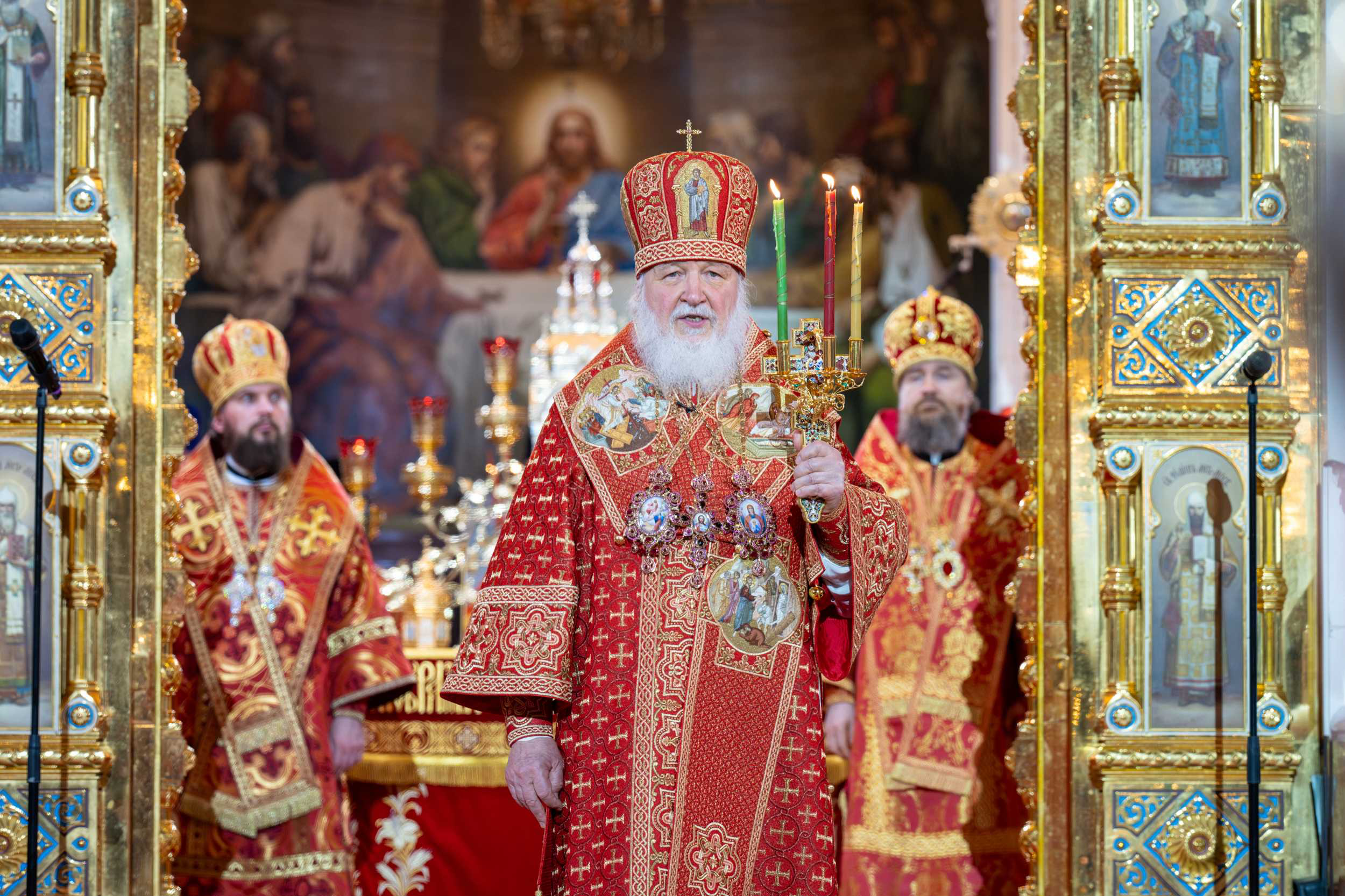 За Пасхальной заутреней Предстоятель Русской Церкви прочитал Слово огласительное святителя Иоанна Златоуста на Святую Пасху.