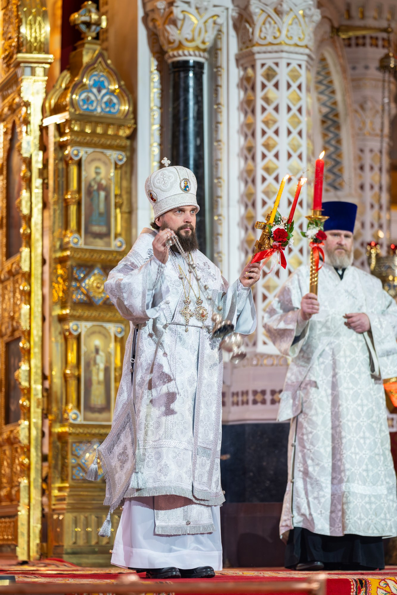 По запричастном стихе протоиерей Михаил Рязанцев огласил Пасхальное послание Святейшего Патриарха Кирилла архипастырям, пастырям, монашествующим и всем верным чадам Русской Православной Церкви.