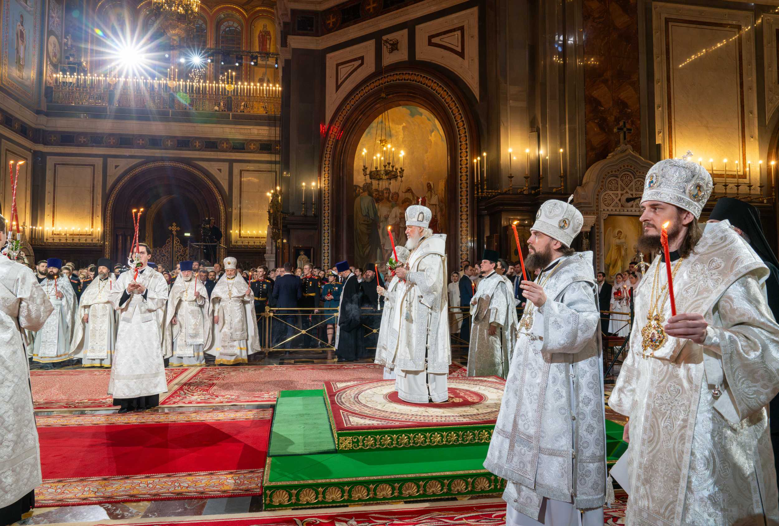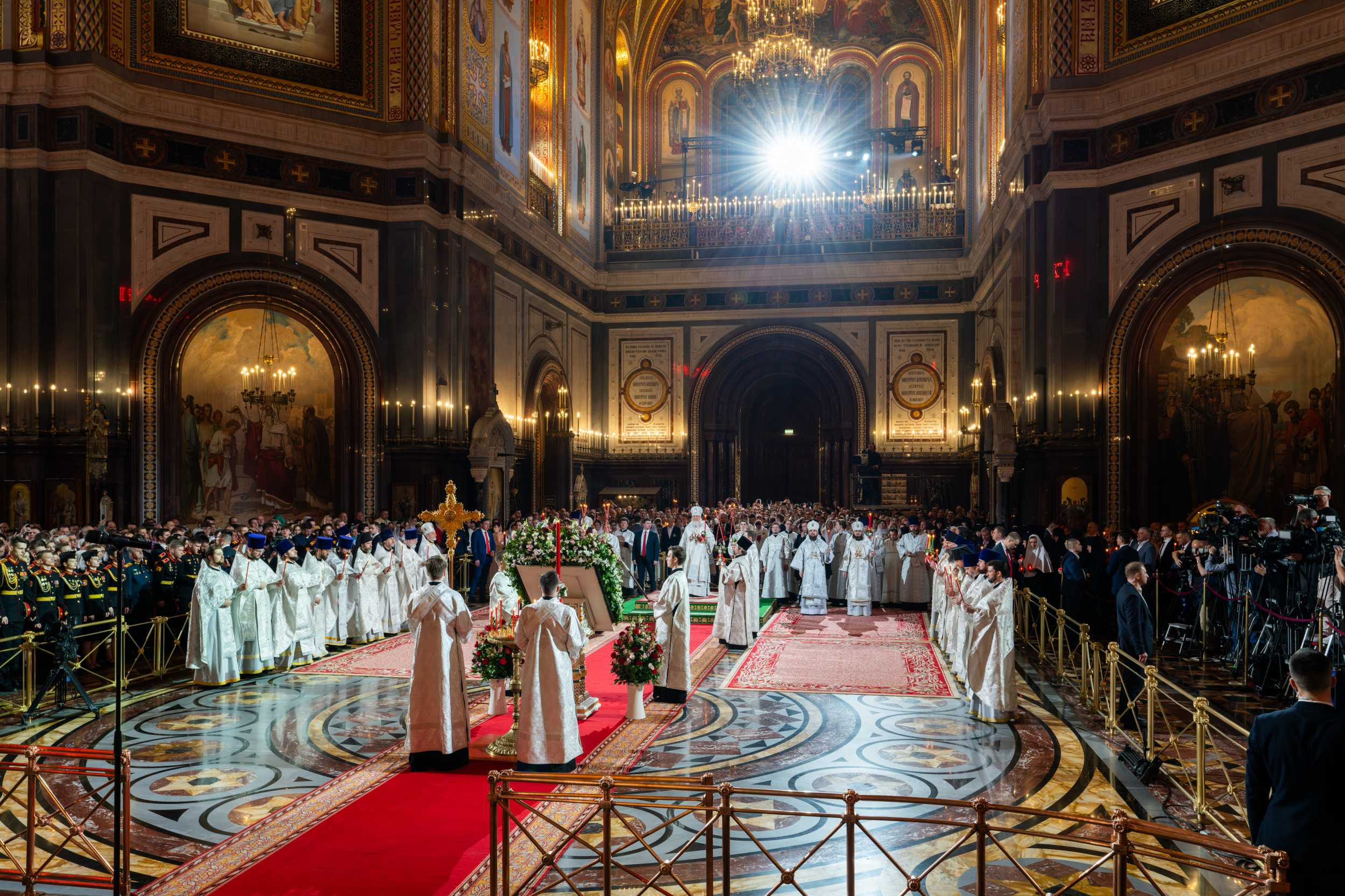 В ночь с 19 на 20 апреля 2025 года в кафедральном соборном Храме Христа Спасителя в Москве Святейший Патриарх Московский и всея Руси Кирилл совершил Пасхальные богослужения — полунощницу, крестный ход, Пасхальную заутреню и Божественную литургию святителя Иоанна Златоуста.