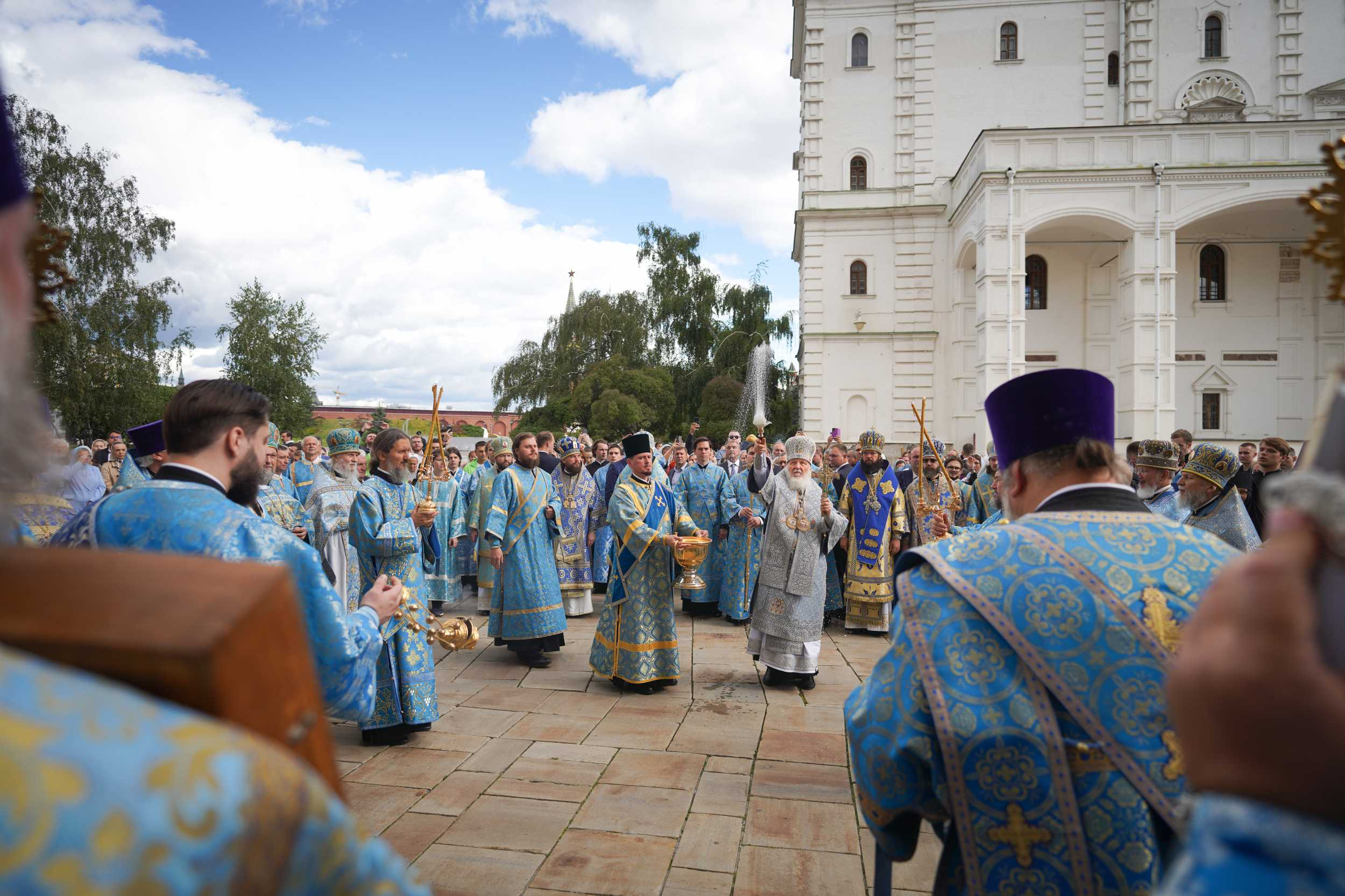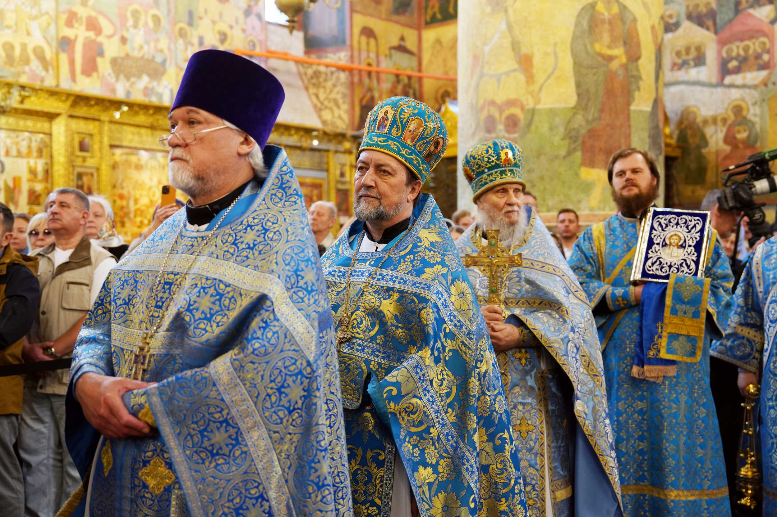 Затем был совершен праздничный молебен Пресвятой Богородице. В завершение состоялся крестный ход вокруг Успенского собора.