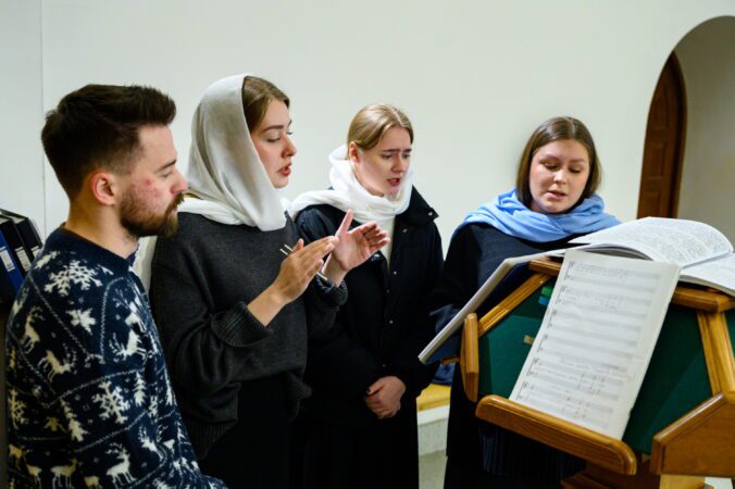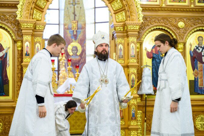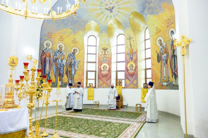 Богослужебные песнопения исполнил хор храма под управлением Марии Герего. Проповедь по запричастном стихе произнес иерей Павел Ефремов.