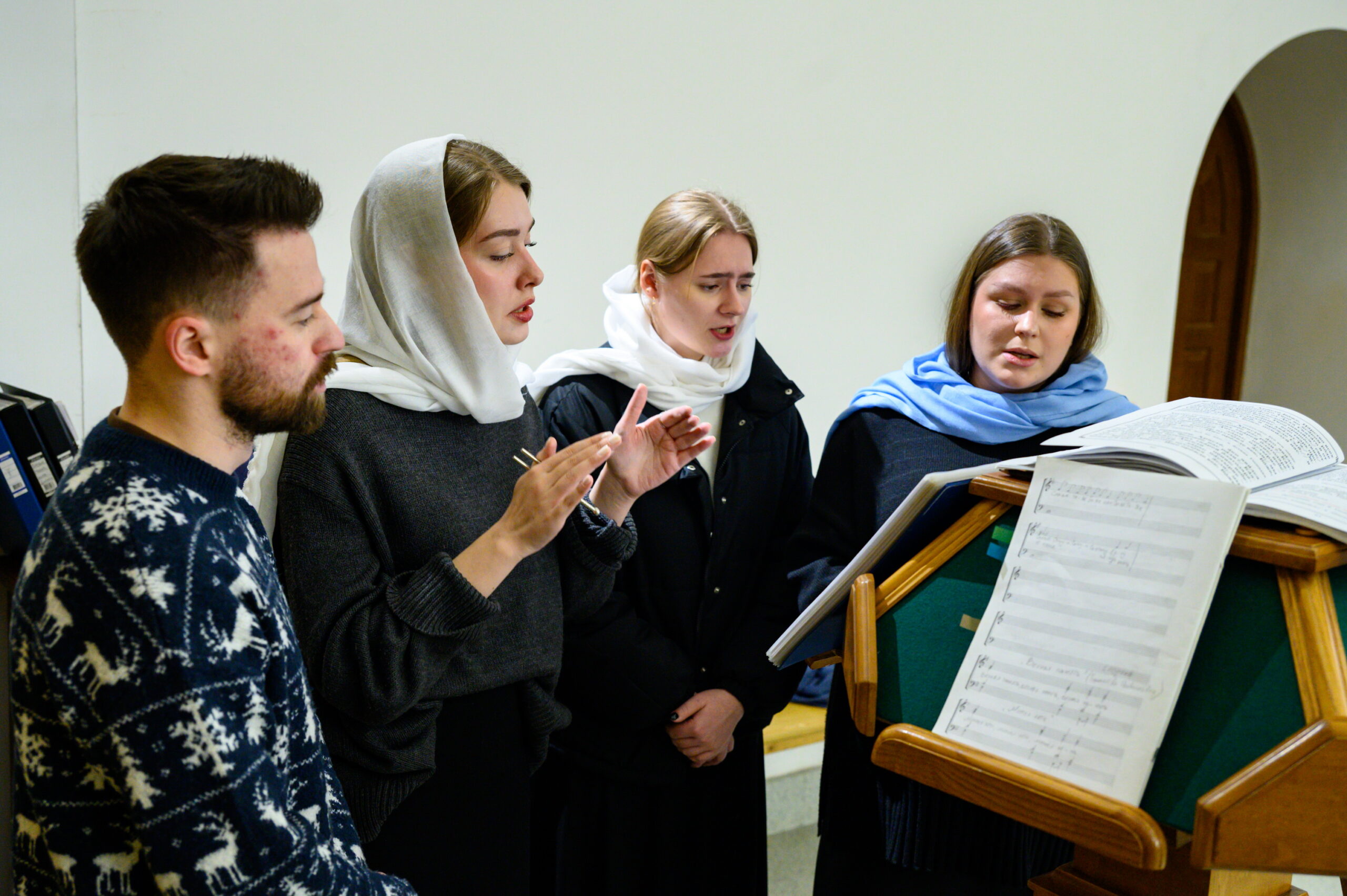 Богослужебные песнопения исполнил хор храма под управлением Марии Герего. Проповедь по запричастном стихе произнес иерей Павел Ефремов.