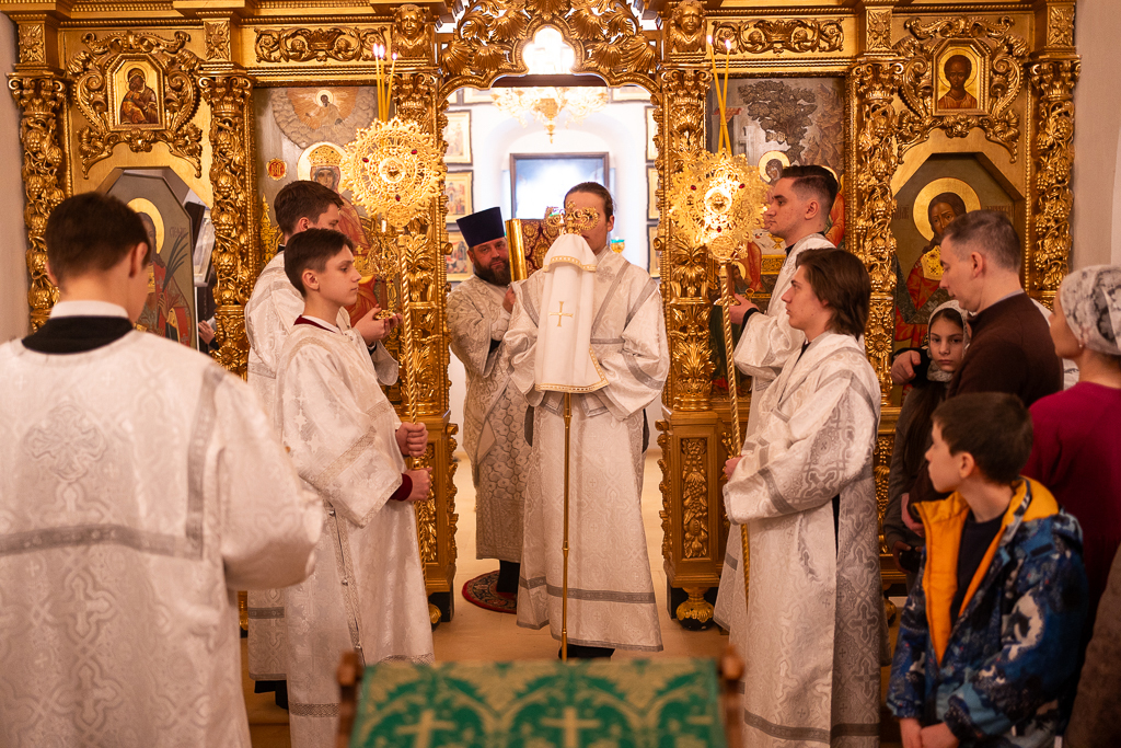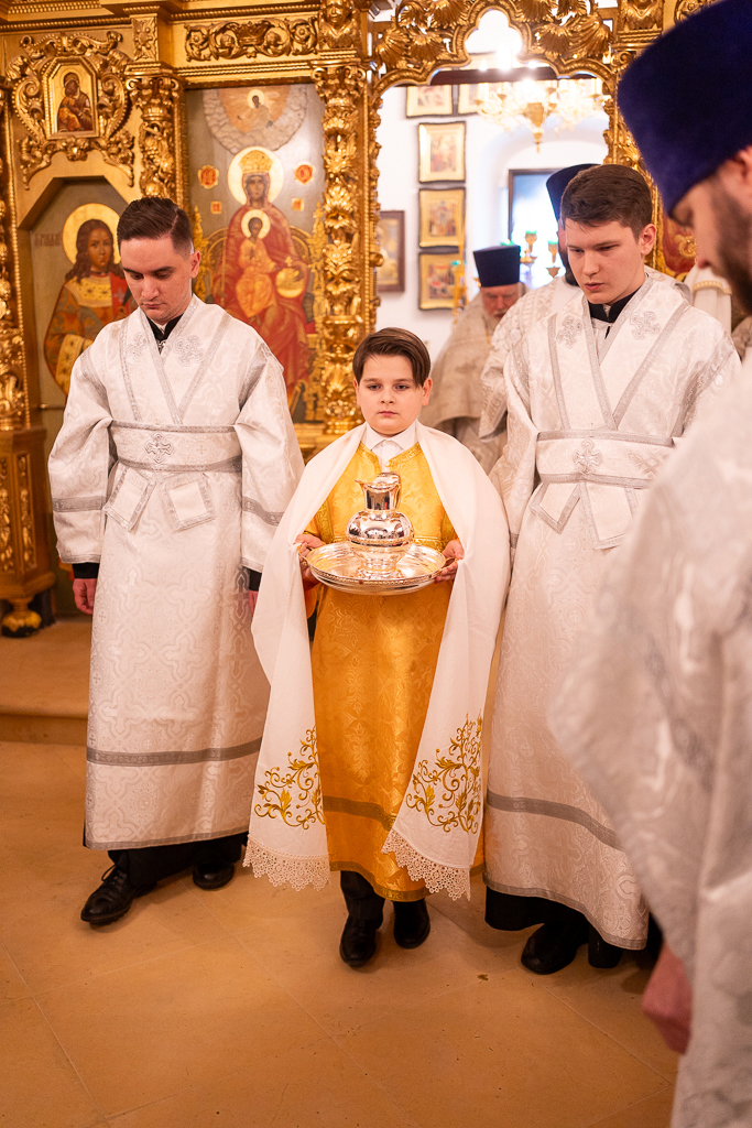 Его Высокопреосвященству сослужили: и.о. руководителя секретариата Северо-Восточного викариатства иерей Сергий Бычков, клирики храма Живоначальной Троицы в Усадьбе Свиблово протоиерей Сергий Рождественский и иерей Димитрий Горбик, а также протодиакон Василий Куфлик, клирик храма Тихвинской иконы Божией Матери, Патриаршего подворья в Алексеевском города Москвы.
