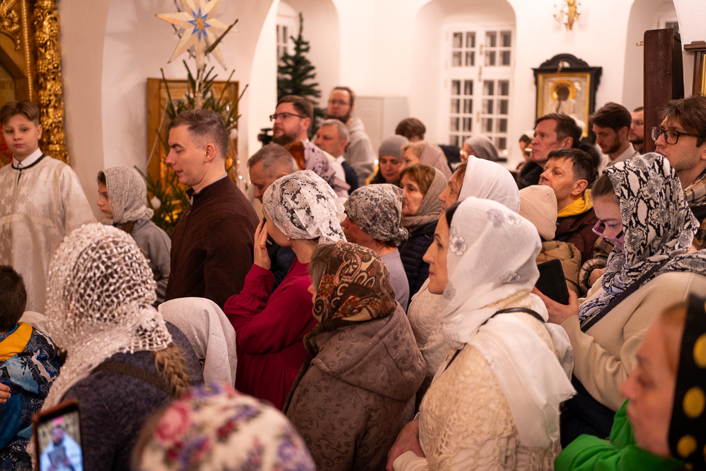 С 6 на 7 января 2025 года, в праздник Рождества Господа Бога и Спаса нашего Иисуса Христа, управляющий Северо-Восточным Московским викариатством митрополит Звенигородский Арсений совершил Божественную литургию в храме Живоначальной Троицы Патриаршего подворья в Усадьбе Свиблово города Москвы.