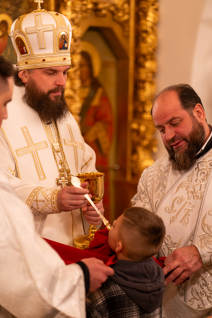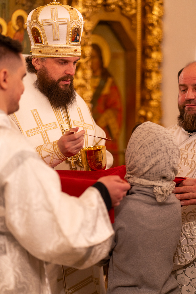 На запричастном стихе иерей Димитрий Горбик огласил Рождественское послание Святейшего Патриарха Московского и всея Руси Кирилла.