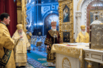 За Литургией Его Святейшеству сослужили сонм архиереев Русской Православной Церкви, в числе которых был управляющий Северо-Восточным Московским викариатством митрополит Звенигородский Арсений, а также наместники ставропигиальных монастырей, благочинные церковных округов Московской (городской) епархии; духовенство Москвы и Московской митрополии.