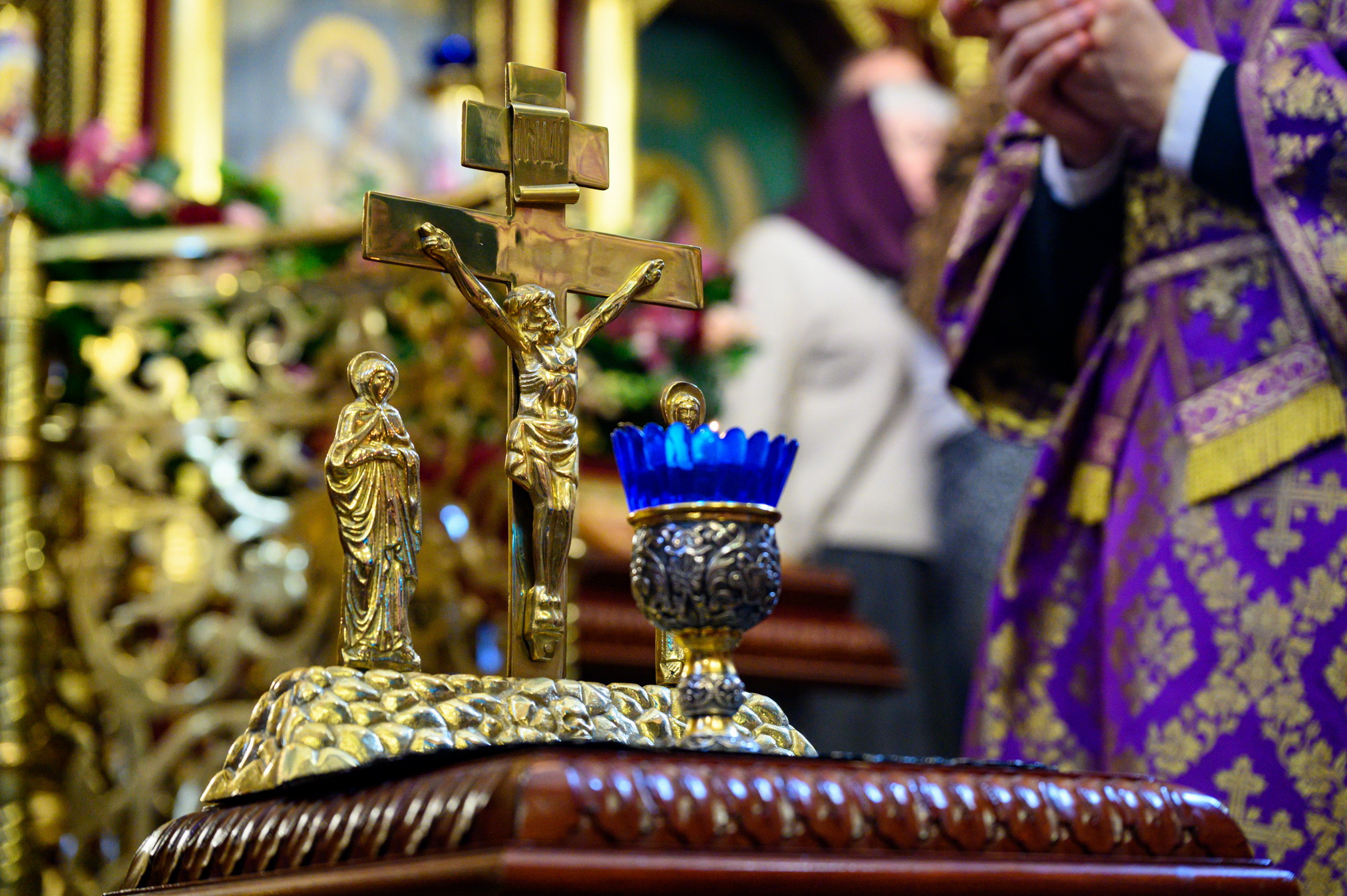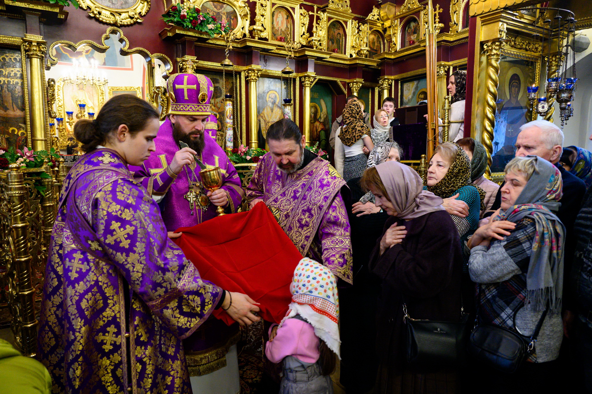 Перед причастием мирян с проповедью к молящимся обратился протоиерей Георгий Басанец.