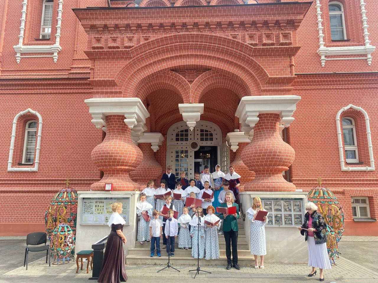 А потом, по доброй традиции, все собрались на крыльце храма. Дети подготовили замечательный концерт: читали стихи авторского сочинения и пели песни. Одну из песен — «Вместе и навсегда» — написала педагог школы Ангелина Викторовна Крутинина. А директор школы, Галина Евгеньевна Лаврушкина, подарила прихожанам и гостям храма песню «Кружится лист».