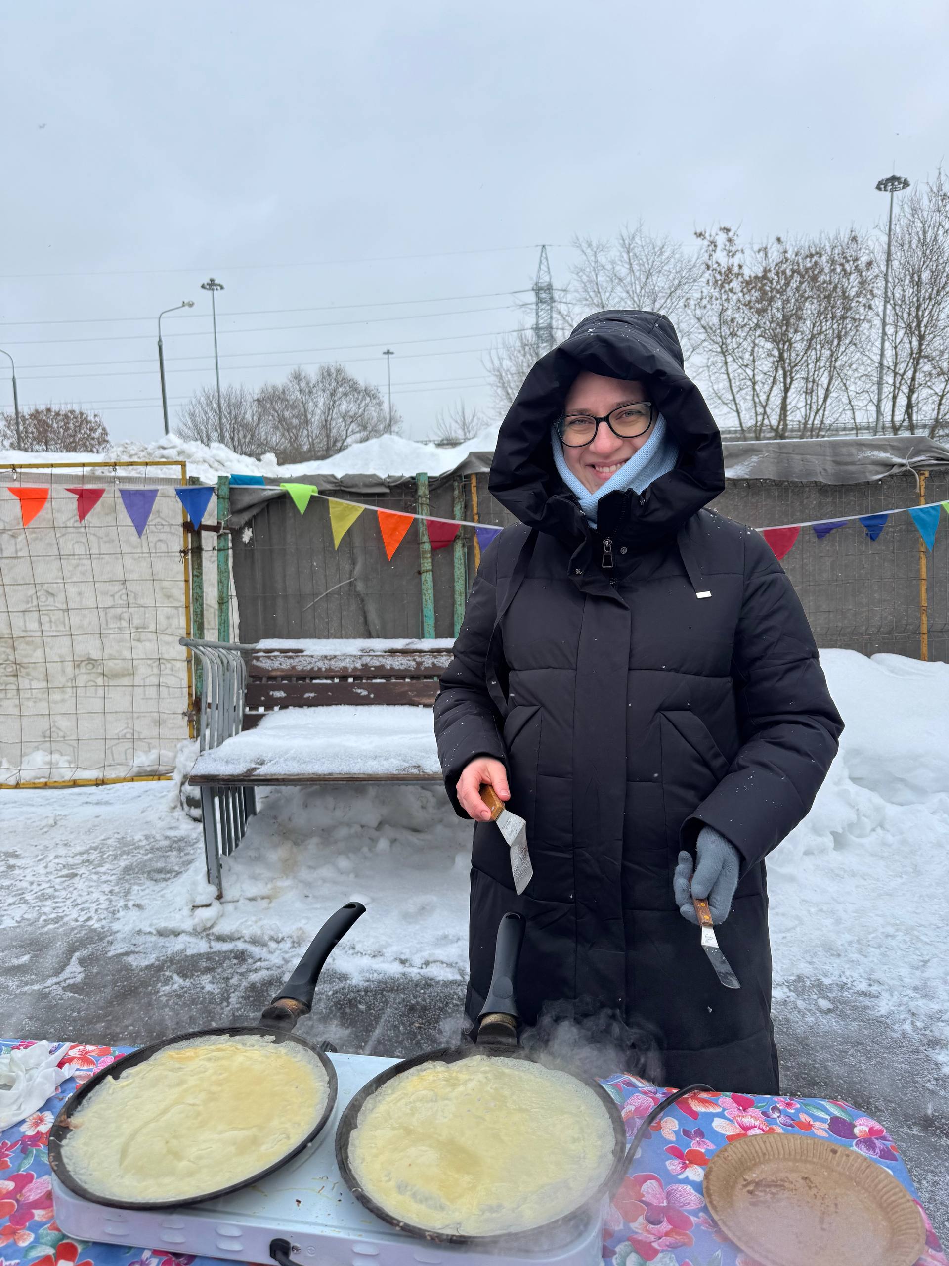 Прихожанка храма Елена, накормила всех вкуснейшими блинами с пылу с жару.